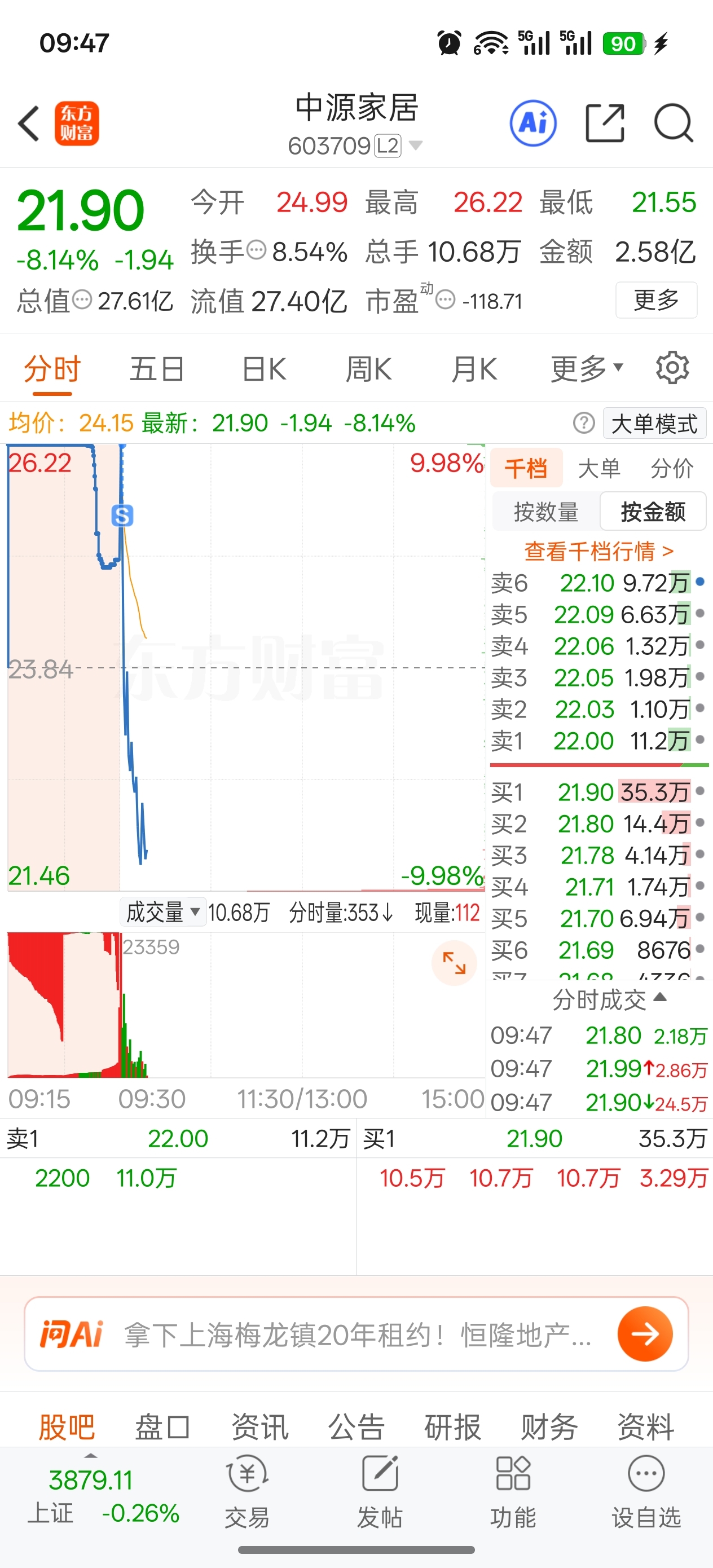 $中源家居(SH603709)$ 我事先声明啊,我跟这次砸盘是没有任何关系滴,不然就告你诽谤,他诽谤我啊