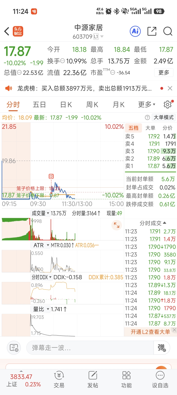 $中源家居(SH603709)$ 可以确定的是,今天不会亏了