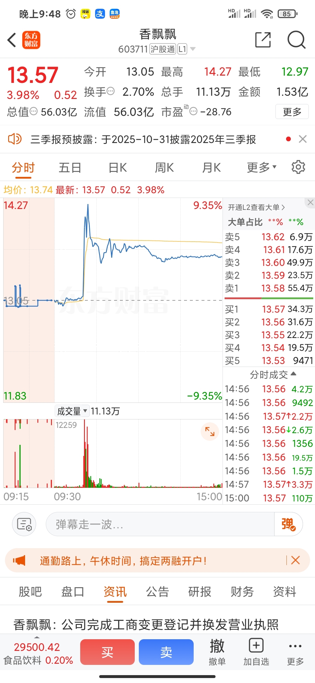 $香飘飘(SH603711)$
