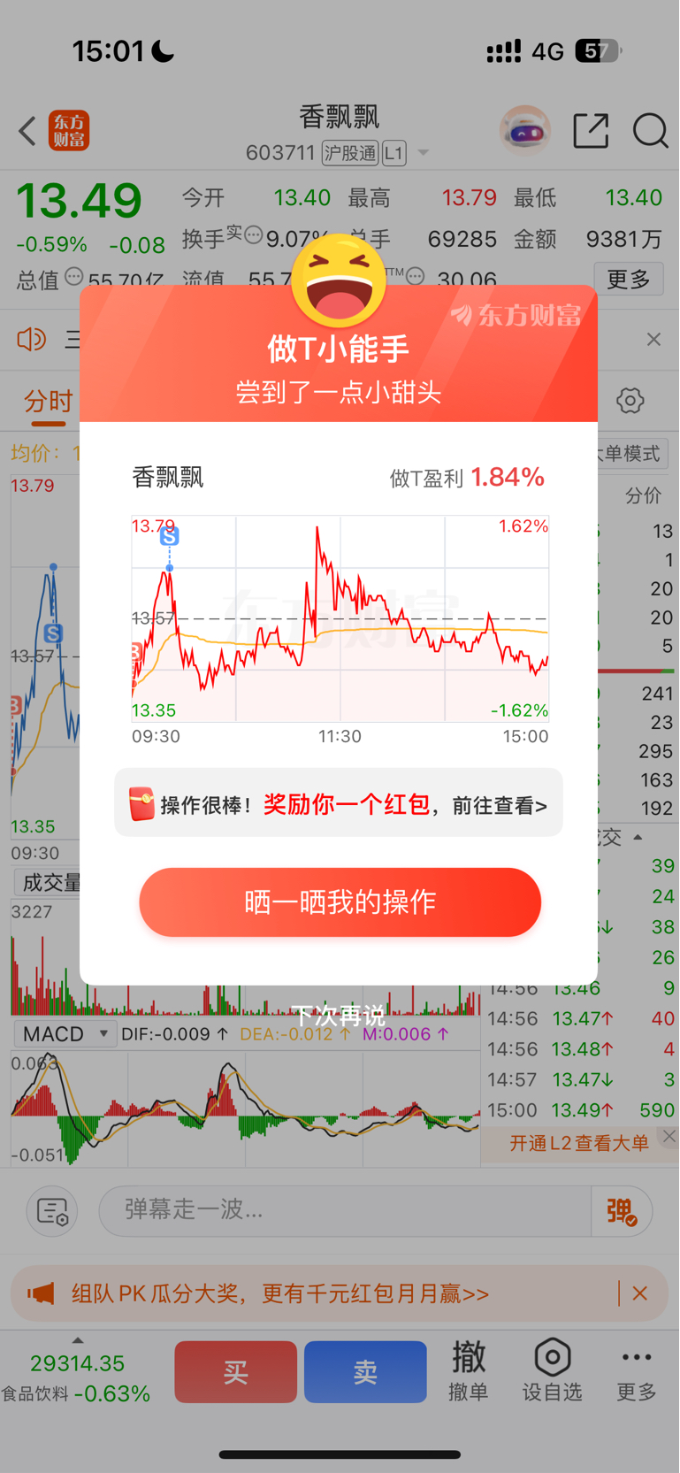 $香飘飘(SH603711)$ 今天飘飘给我一顿晚餐钱.
