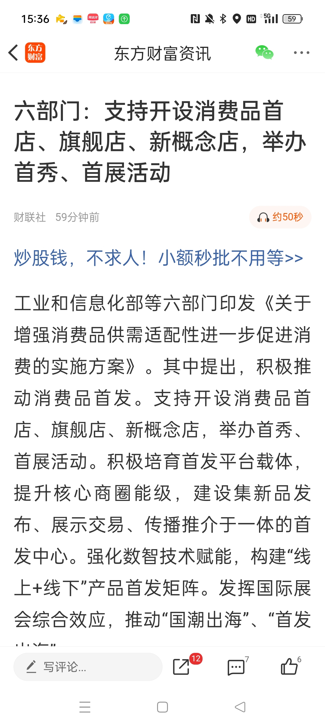 六部门:支持开设消费品首店、旗舰店、新概念店,举办首秀、首展活动