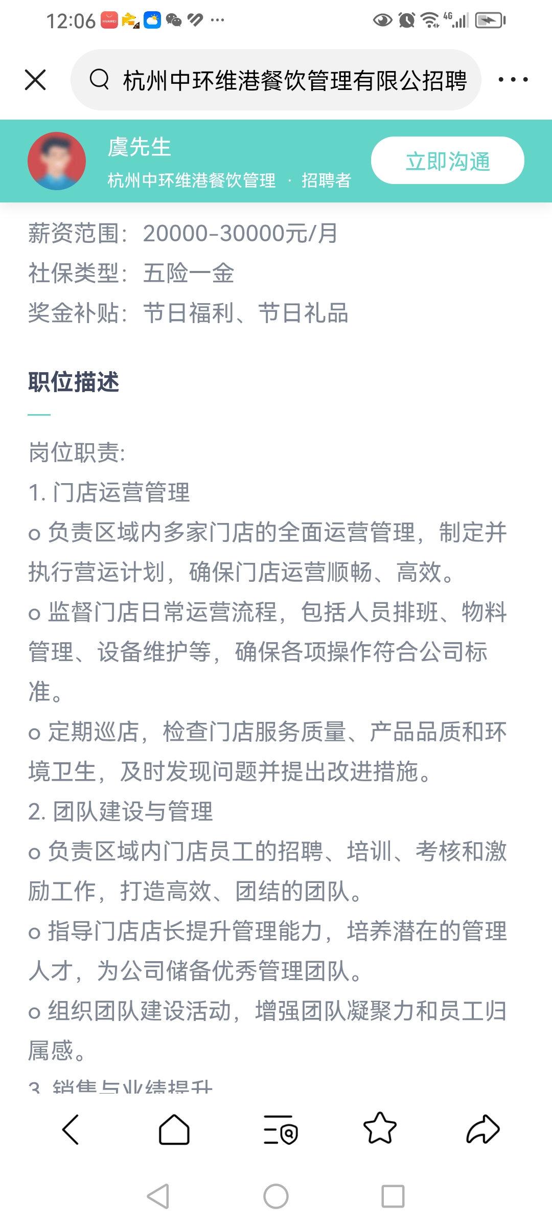 杭州中环维港餐饮管理有限公司招聘工资这么高