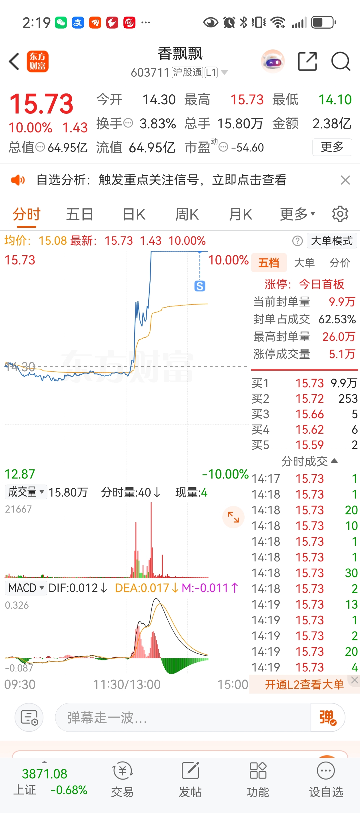 $香飘飘(SH603711)$ 一路卖,那我也卖吧