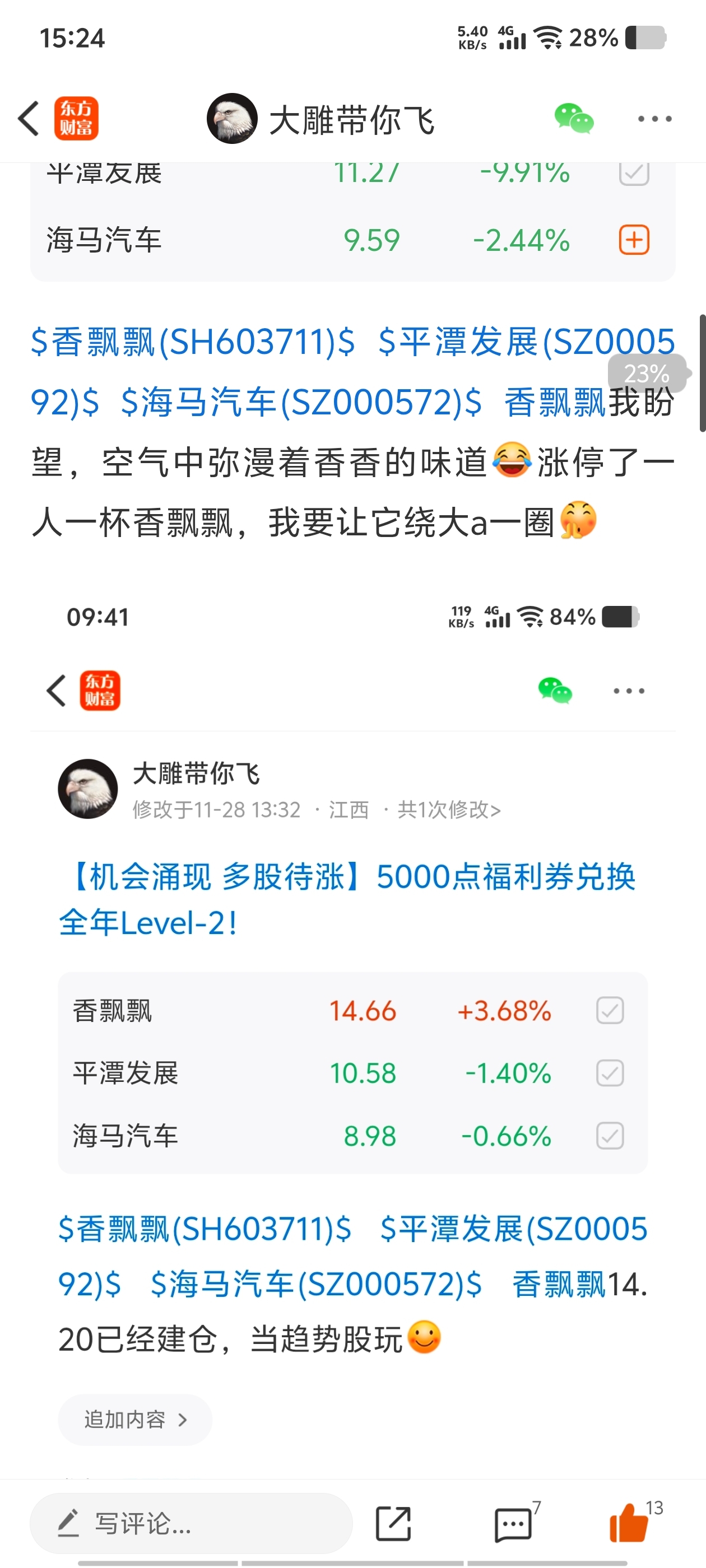 $香飘飘(SH603711)$  $平潭发展(SZ000592)$  $合富中国(SH603122)$  大雕只能给你提供一个思路,买不买取决于你自己!点个关注不花钱,万一对你有帮助呢?