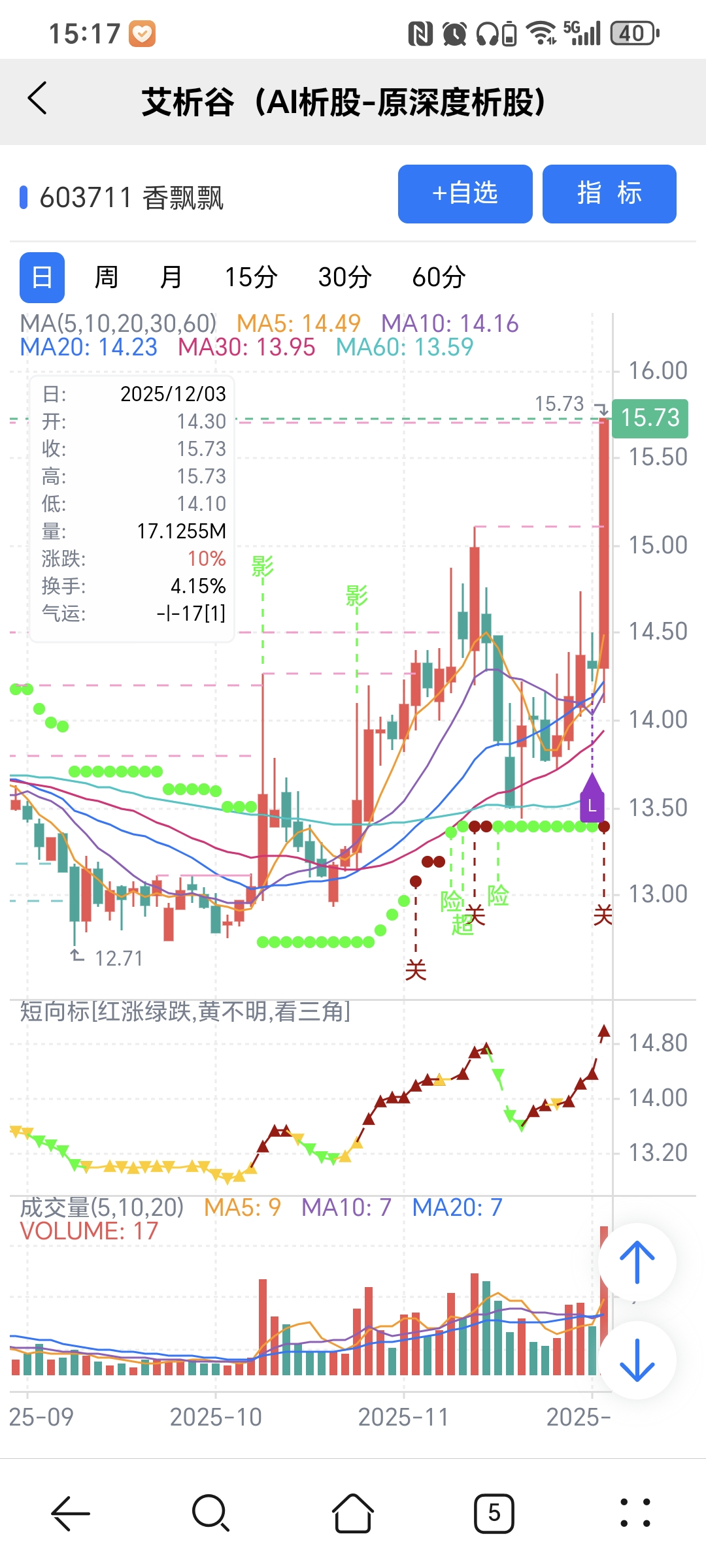 红绿小圆点是艾析谷的量化指标-超级短趋线,是趋势跟踪+突破类的量化指标,完全免费。