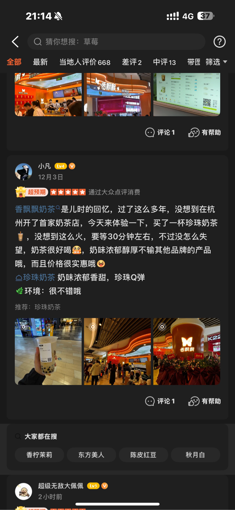 $香飘飘(SH603711)$ 大众点评上评价和热度还不错
