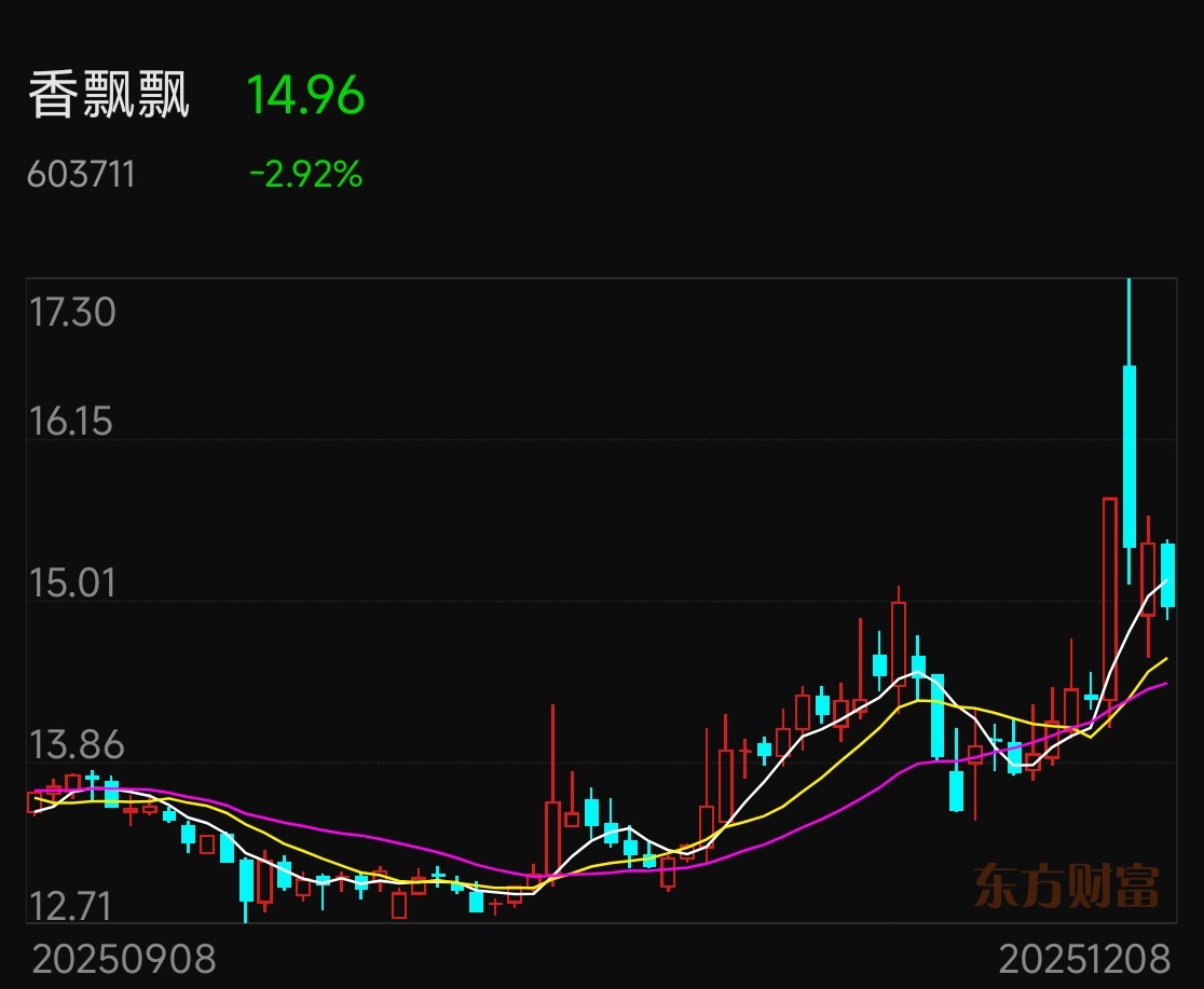 $香飘飘(SH603711)$ 我准备尾盘分批买点底仓,准备长期拿,不敢买太多,要留个先手,我预计的是周二大概率要收复16.02元,收复了这里趋势就还在,否则就回60日均线附近防守吧,赌一把。