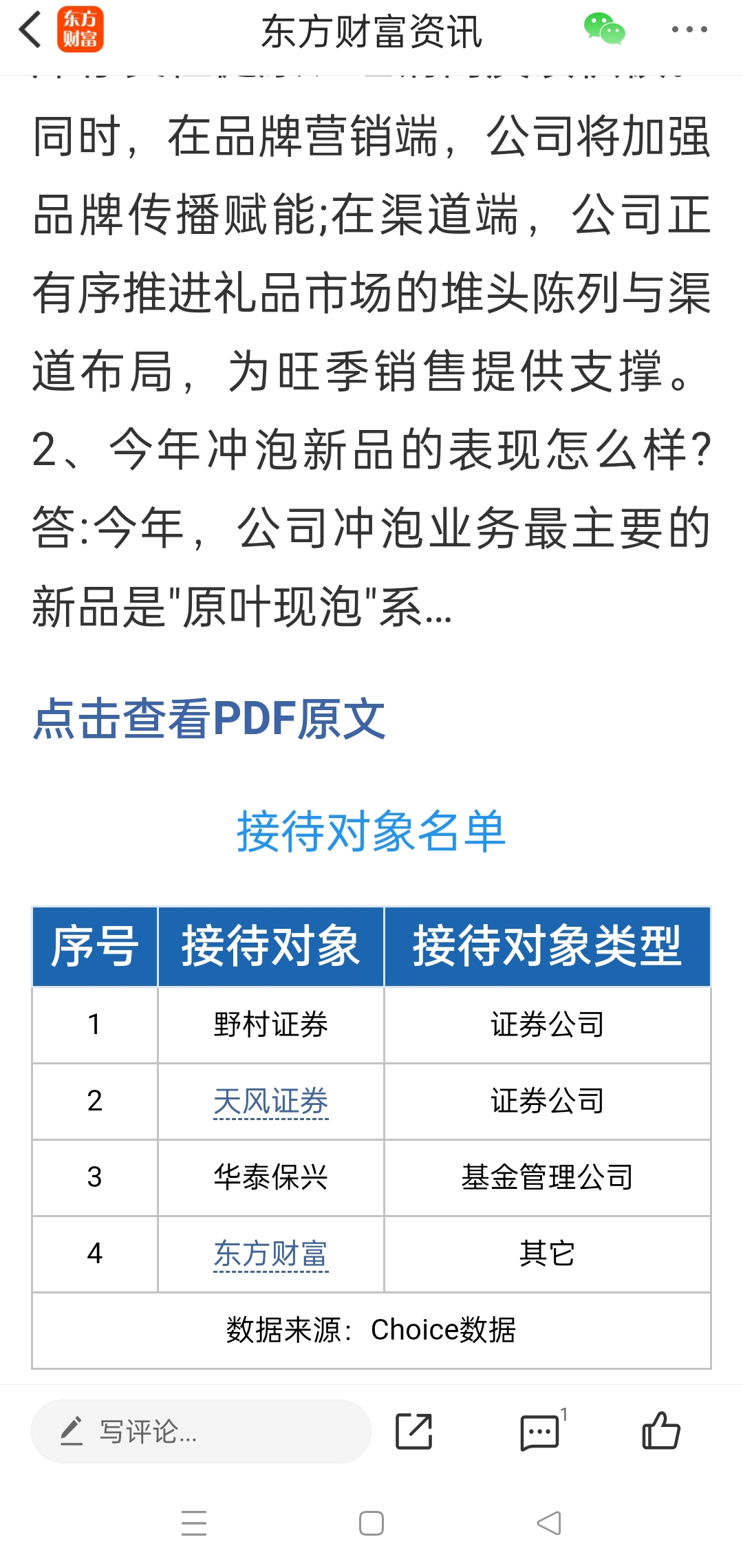 连东方财富都来调研,那么多家来调研,倒是买啊。线下现制茶饮竞争是很激烈,但是,也
