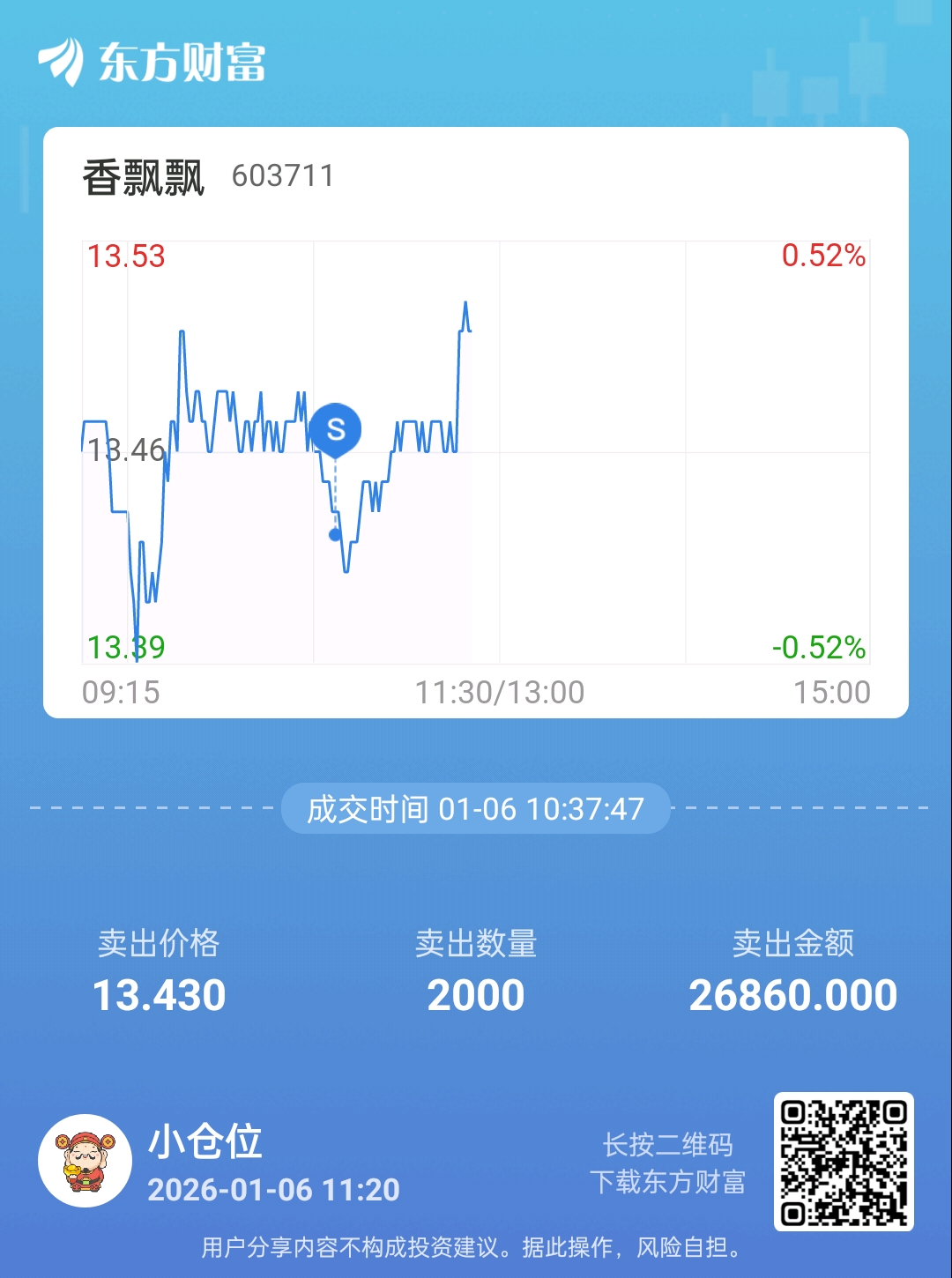 温馨提示: 1.根据《证券法》规定,禁止编造、传播虚假信息或者误导性信息,扰乱证券市场;2.用户在本社区发表的所有资料、言论等仅代表个人观点,与本网站立场无关,不对您构成任何投资建议。用户应基于自己的独立判断,自行决定证券投资并承担相应风险。《东方财富社区管理规定》