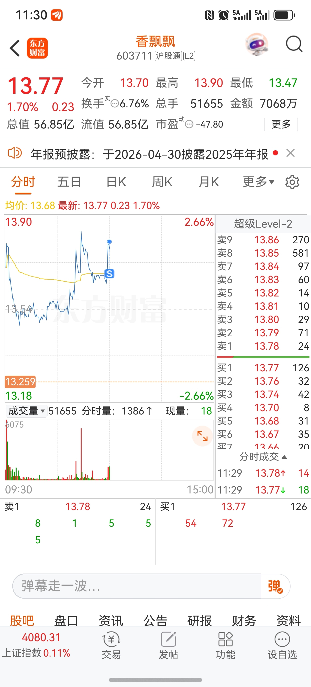 $香飘飘(SH603711)$ 擦,我以为谁挂的1000手,原来是我挂的