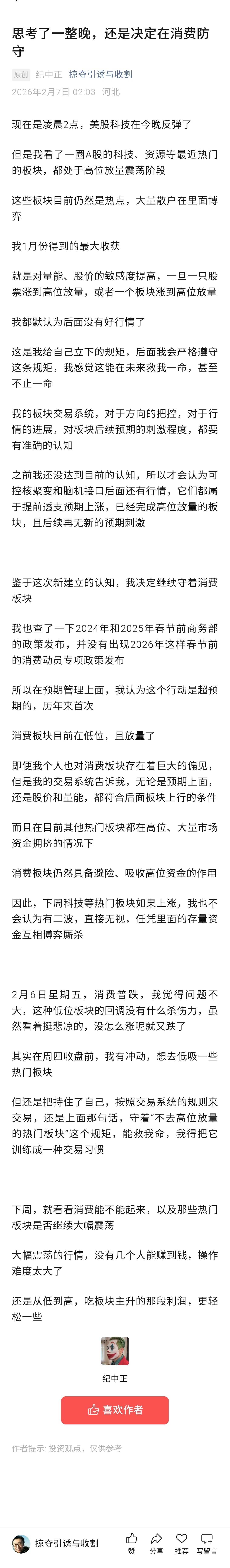 好好思考了一整晚,还是决定在消费防守