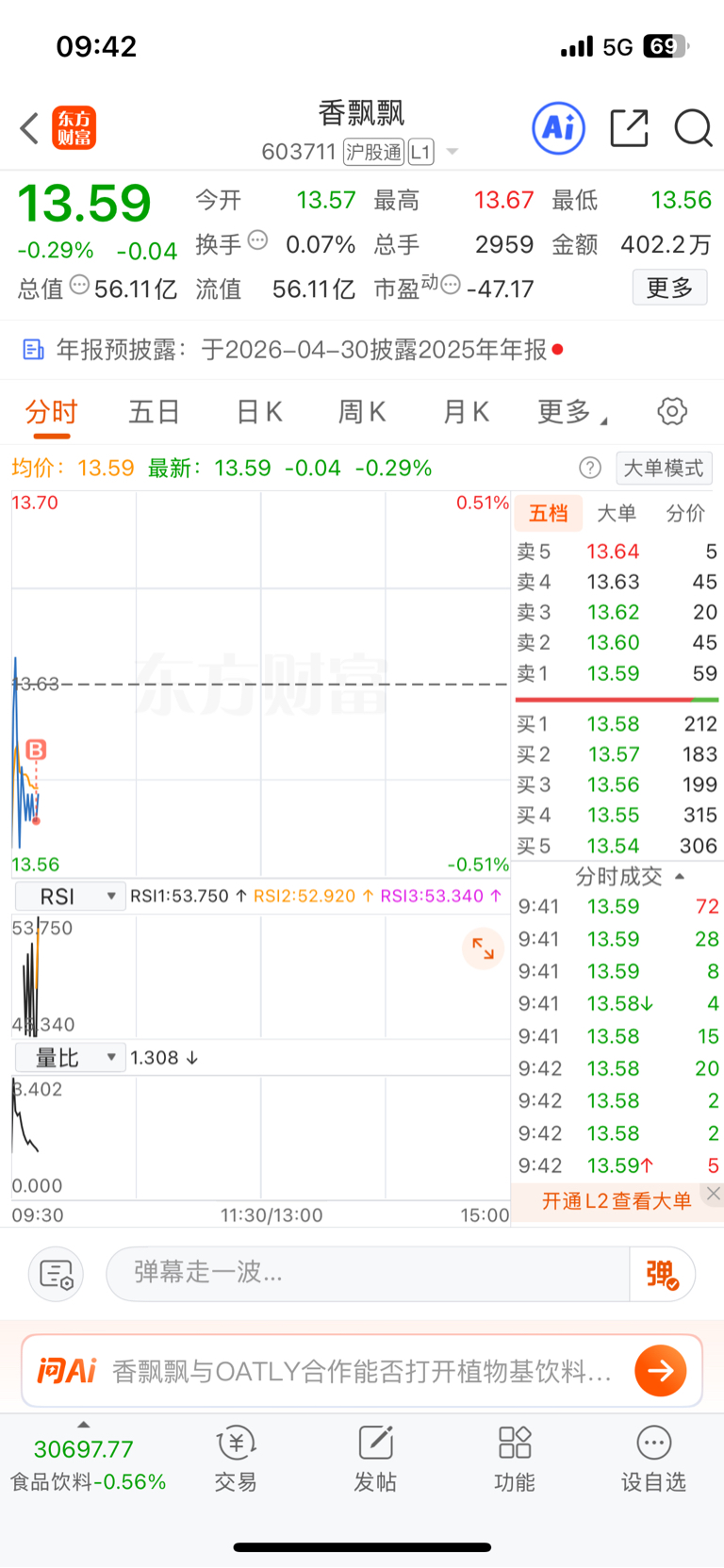 $香飘飘(SH603711)$ 知道你今天要砸,
