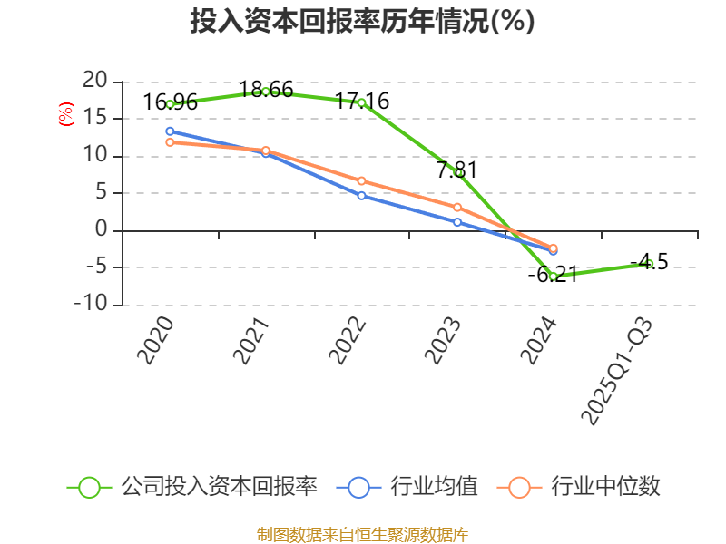 盈利能力方面, 2025年前三季度公司加权平均净资产收益率为-4.82%,同比下降4.23个百分点。公司2025年前三季度投入资本回报率为-4.5%,较上年同期下降3.43个百分点。