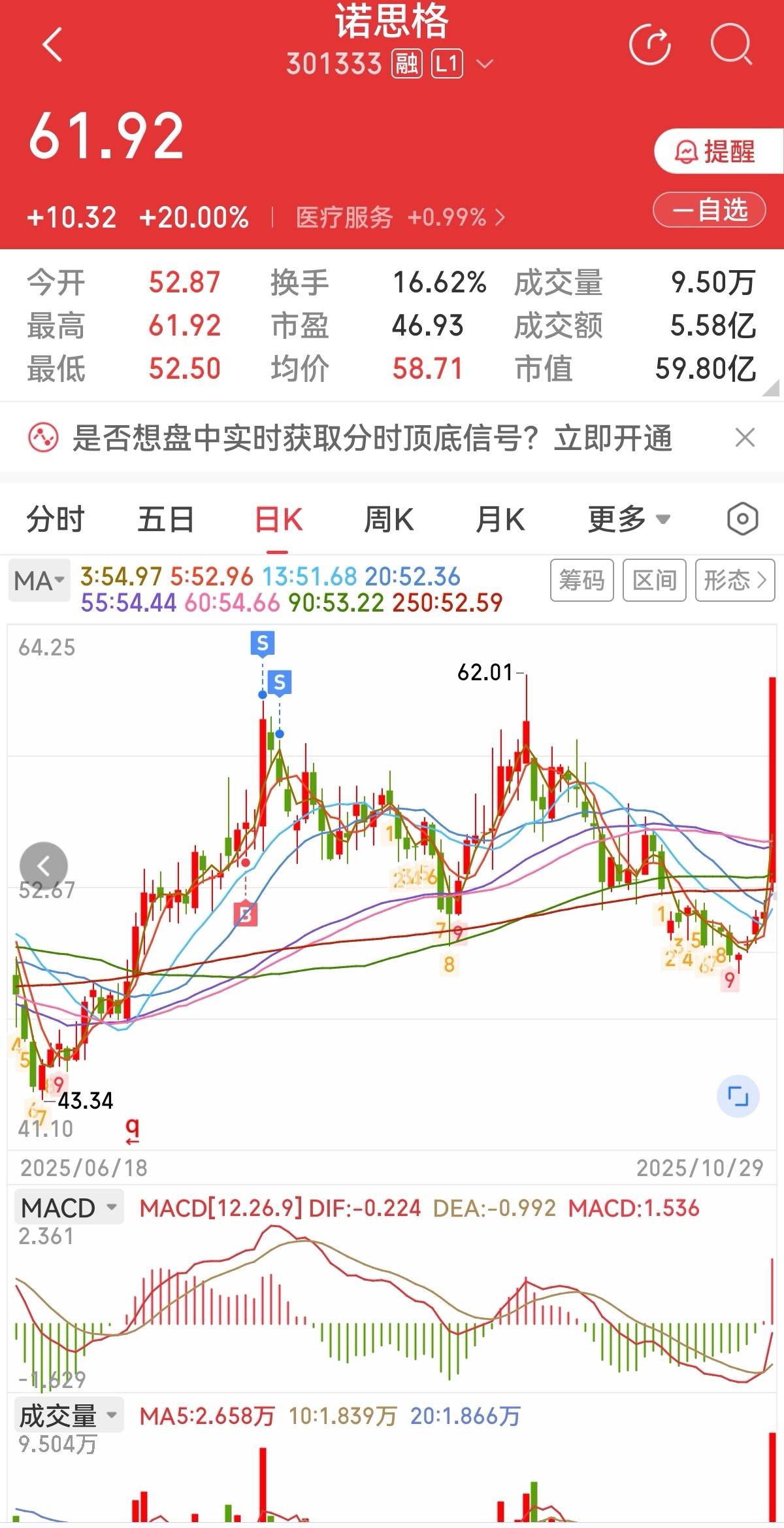 $七一二(SH603712)$ 虽然亏损,同比下降686%,是利好吧,我贪便宜去了,两个账户都买过,诺思格和你,同样是跳高缺口,泪,还冲上了年线的,