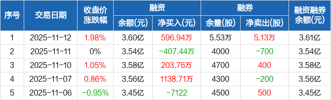 七一二:融资净买入596.94万元,融资余额3.6亿元(11-12)