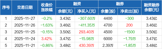 七一二:融资净偿还307.6万元,融资余额3.43亿元(11-27)