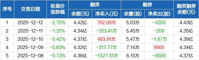 七一二:融资净买入762.09万元,融资余额4.42亿元(12-12)