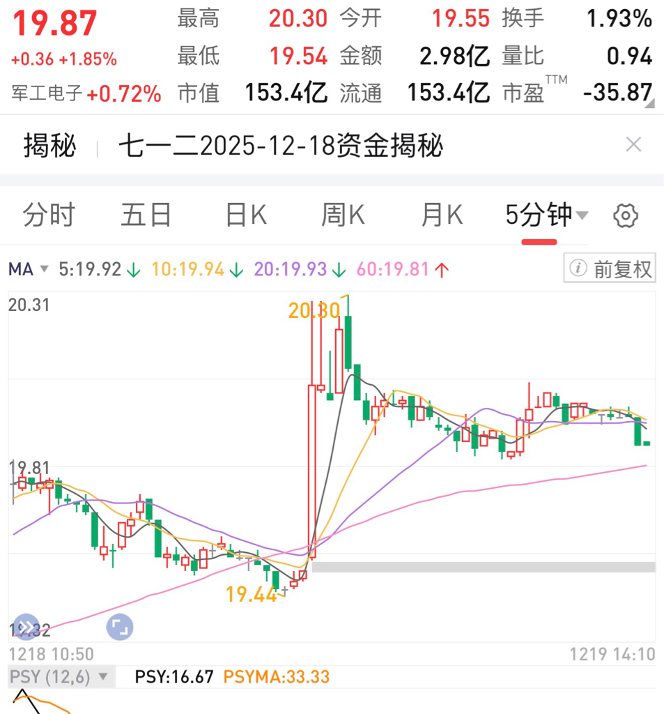 $七一二(SH603712)$ 认真看你就会发现只涨了一分钟其它时间全在跌