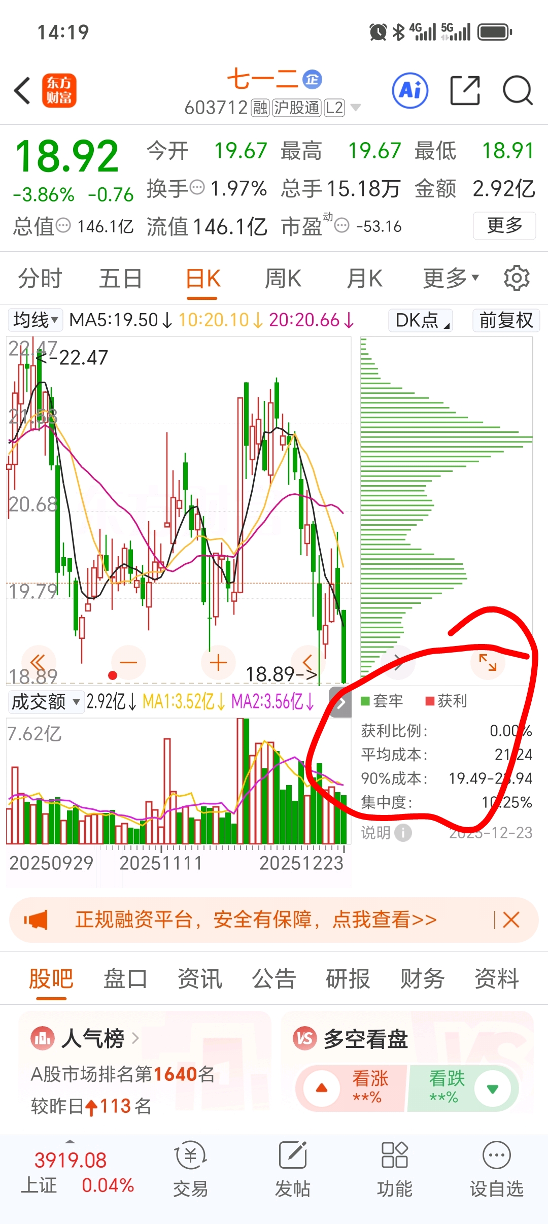 $七一二(SH603712)$ 全是套牢盘了,看来短期就这样了,