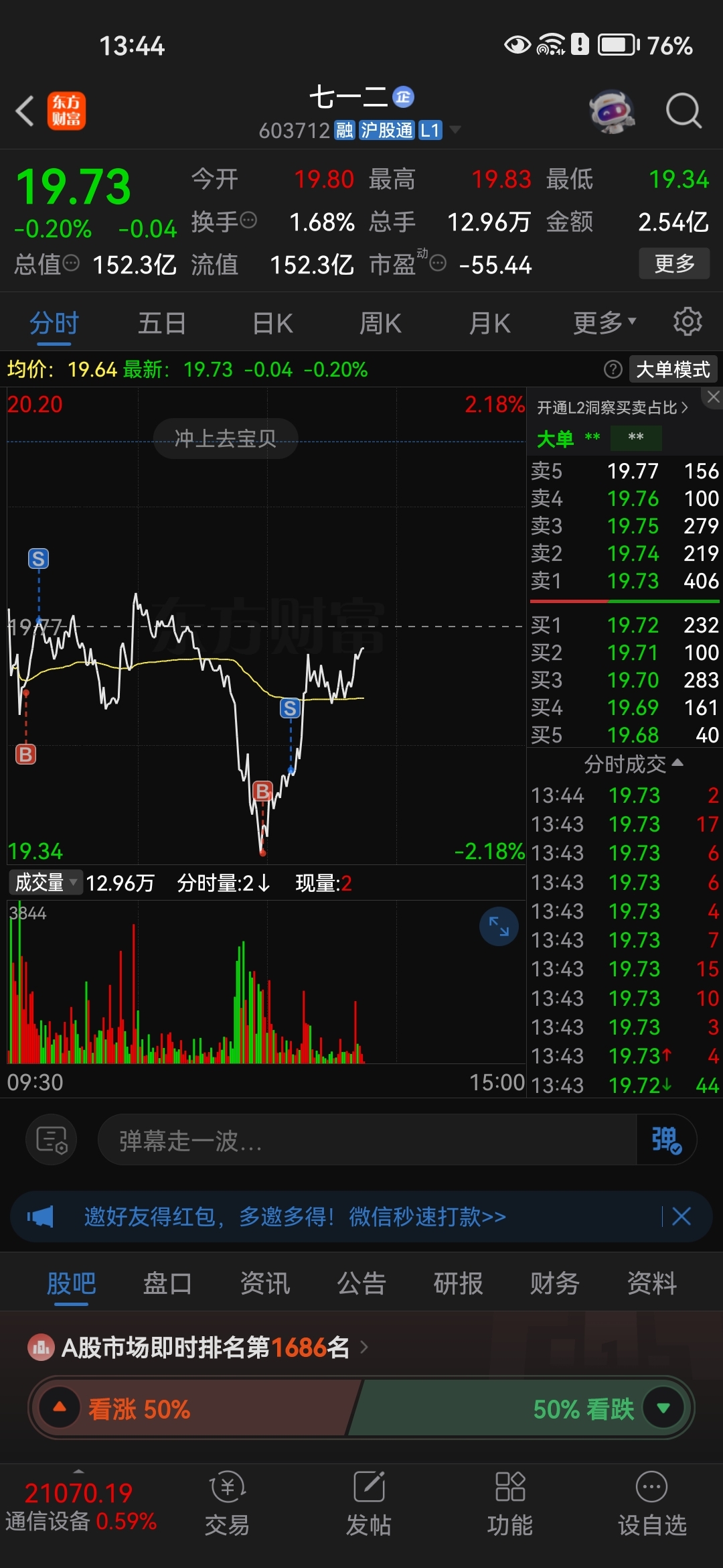 $七一二(SH603712)$ 可惜踢早了,因为爆仓