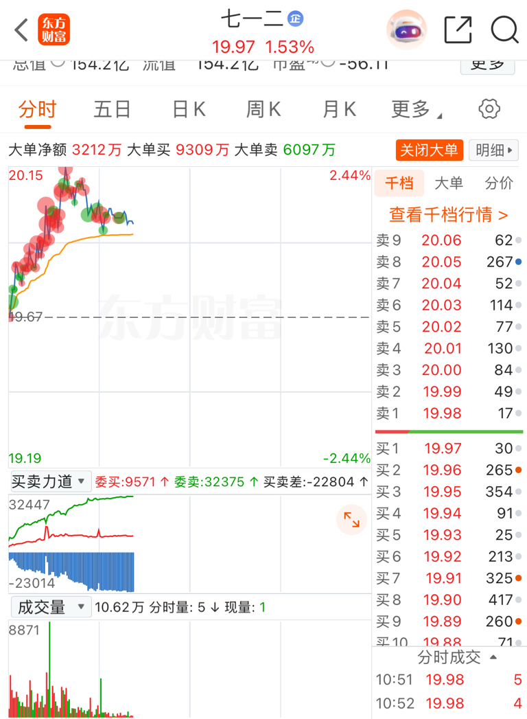$七一二(SH603712)$ 今天都在出货吗,看看大绿柱,吓人,跑