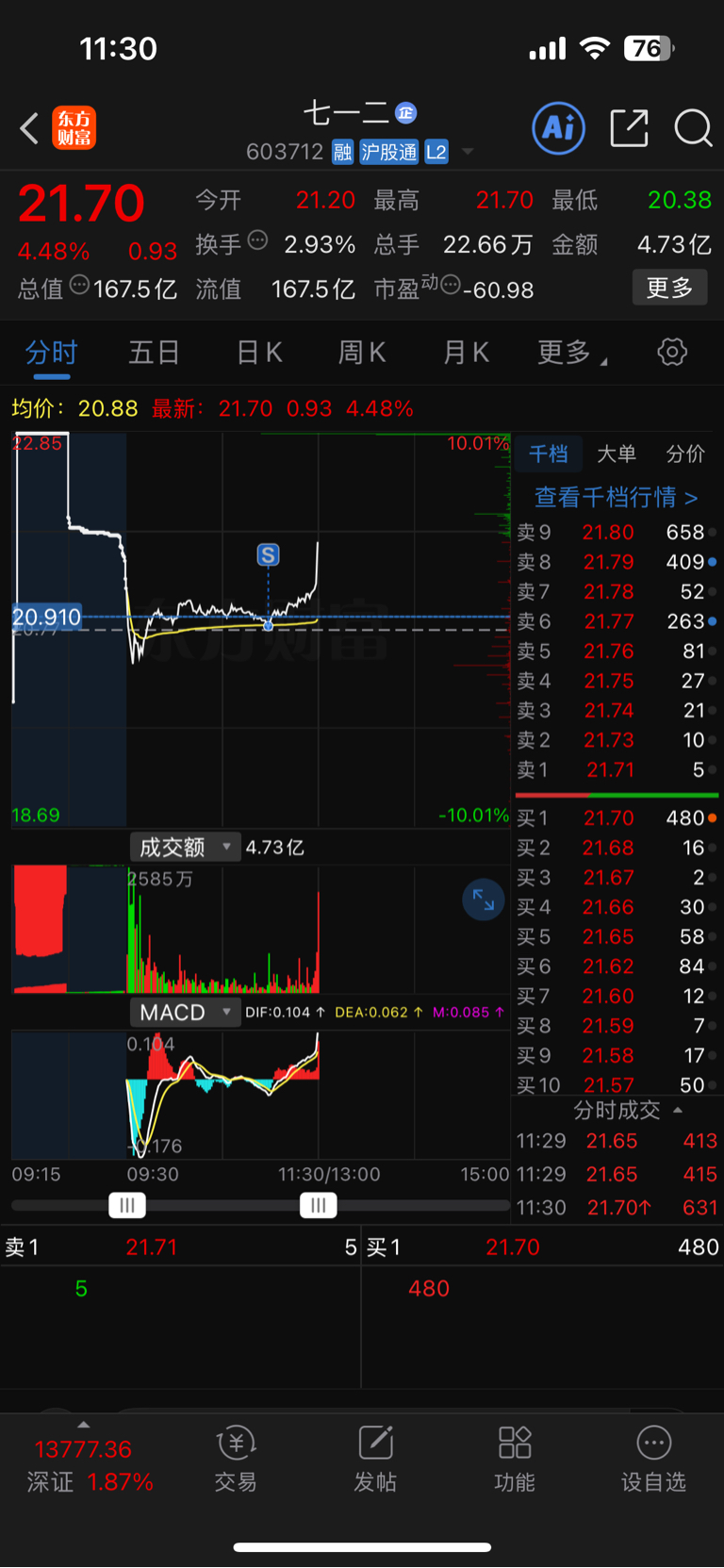 $七一二(SH603712)$ 好 好 好 这样玩是吧