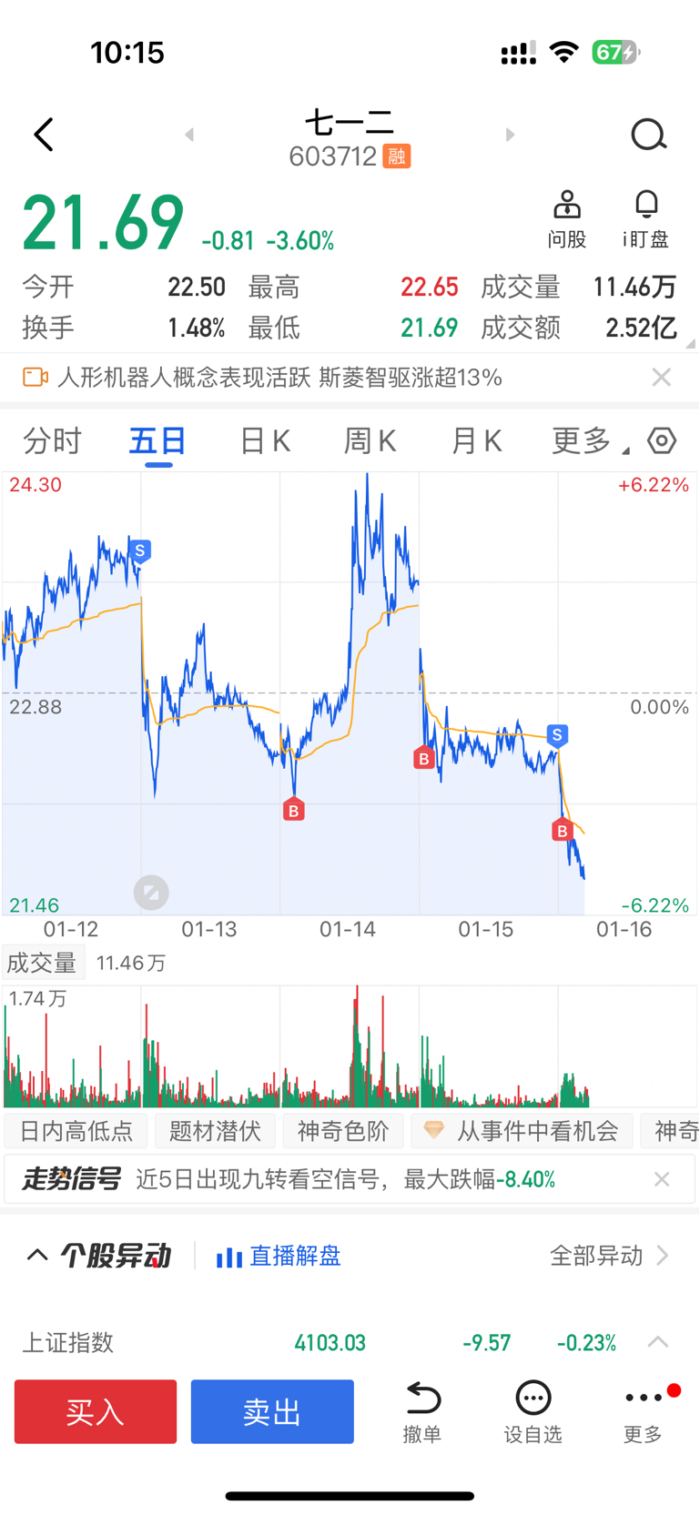 $七一二(SH603712)$ 谨慎小心的还是被主力暴打