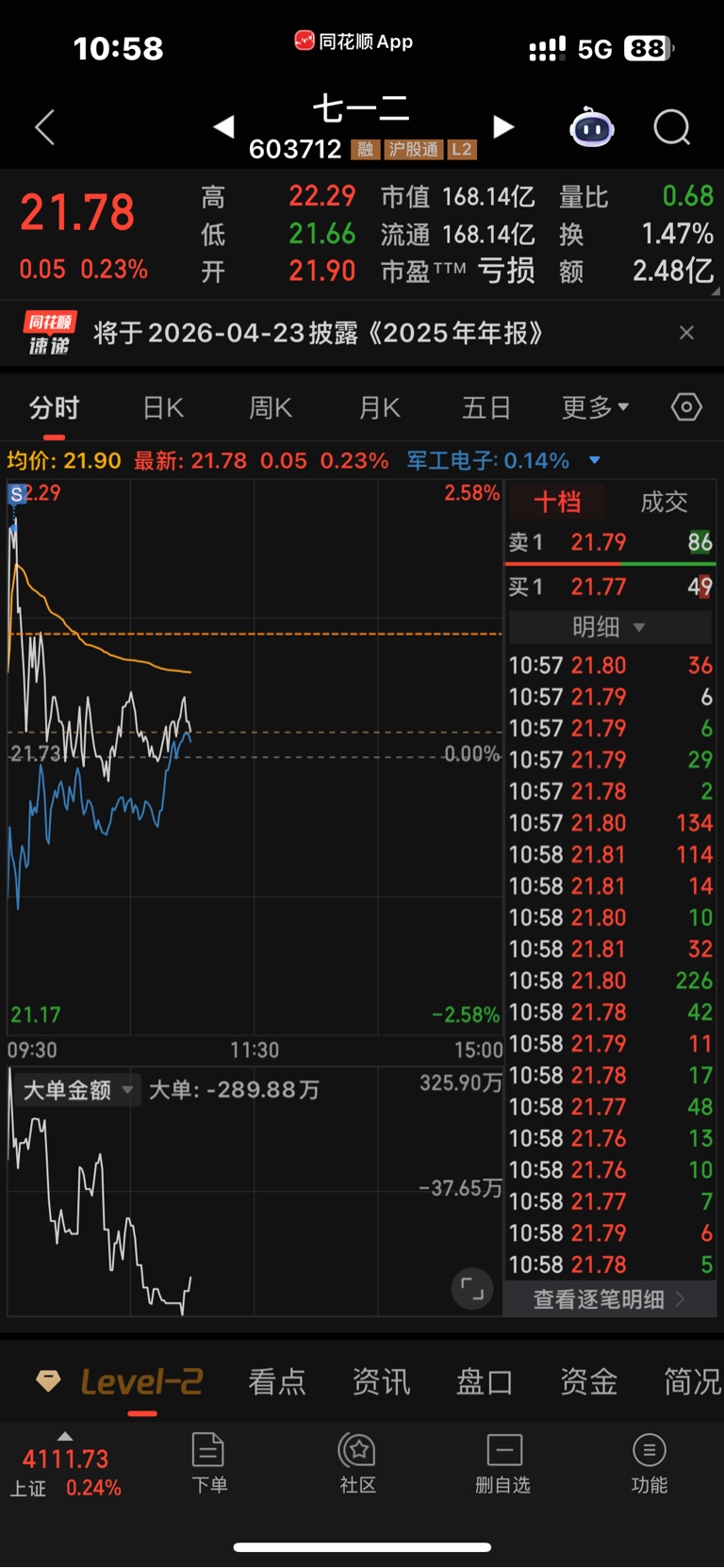 $七一二(SH603712)$ 大涨大卖 卖不飞的