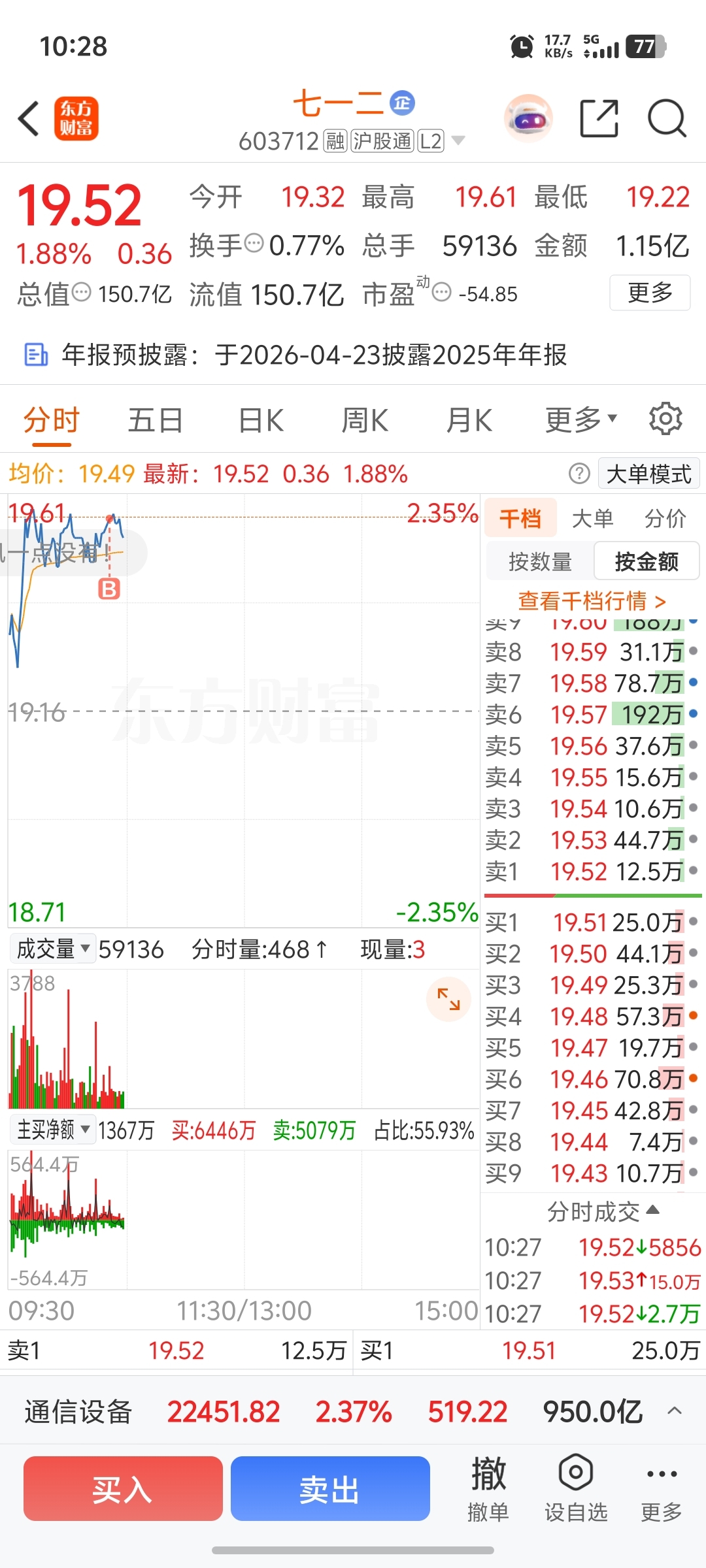 $七一二(SH603712)$ 买在了山顶