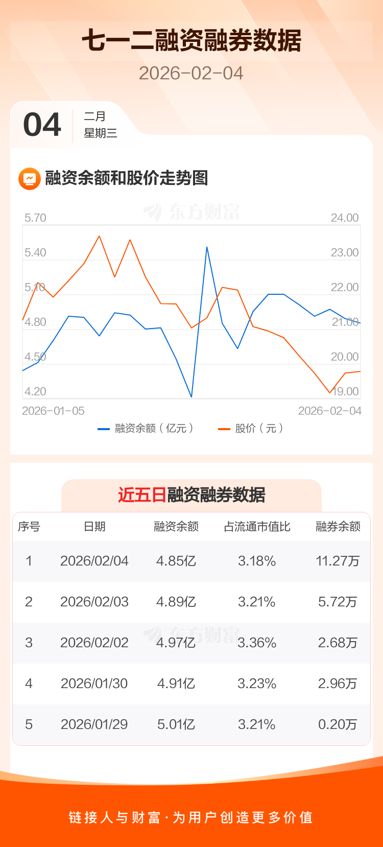交易所最新数据显示,七一二于2026年2月4日获融资买入2793.18万元,融资偿还3234.70万元,当日融资净偿还441.53万元。目前,该股融资余额4.85亿,占流通市值比例为3.18%。