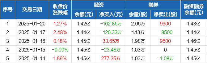 密尔克卫:融资净偿还162.86万元,融资余额1.42亿元(01-20)