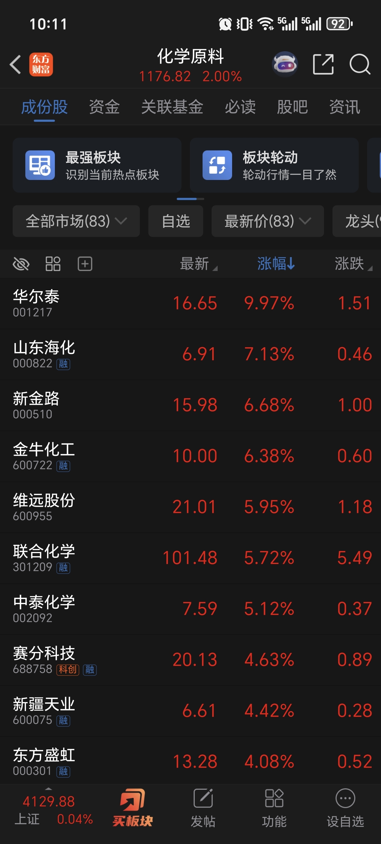 今天化工股大涨