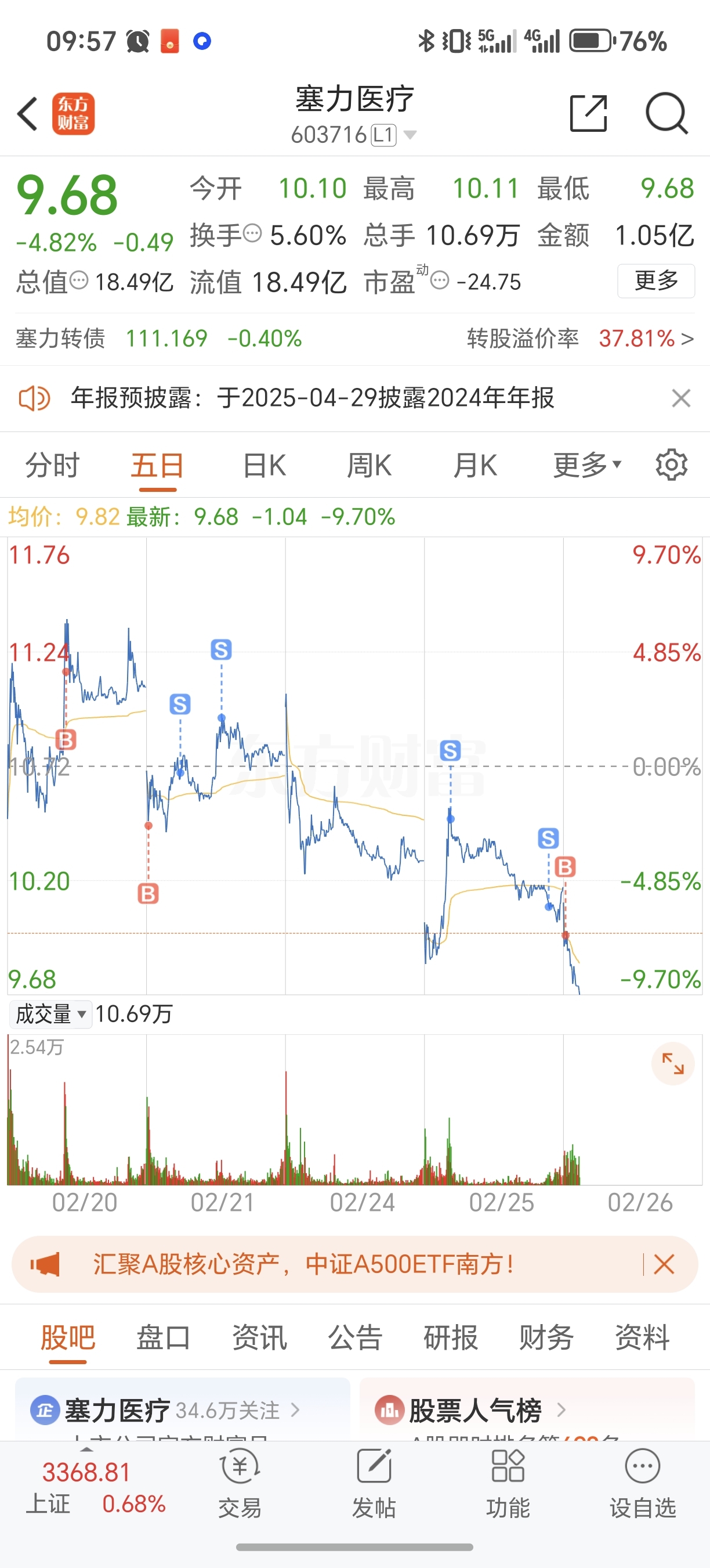 $塞力医疗(SH603716)$ 昨天卖了就不该买回来