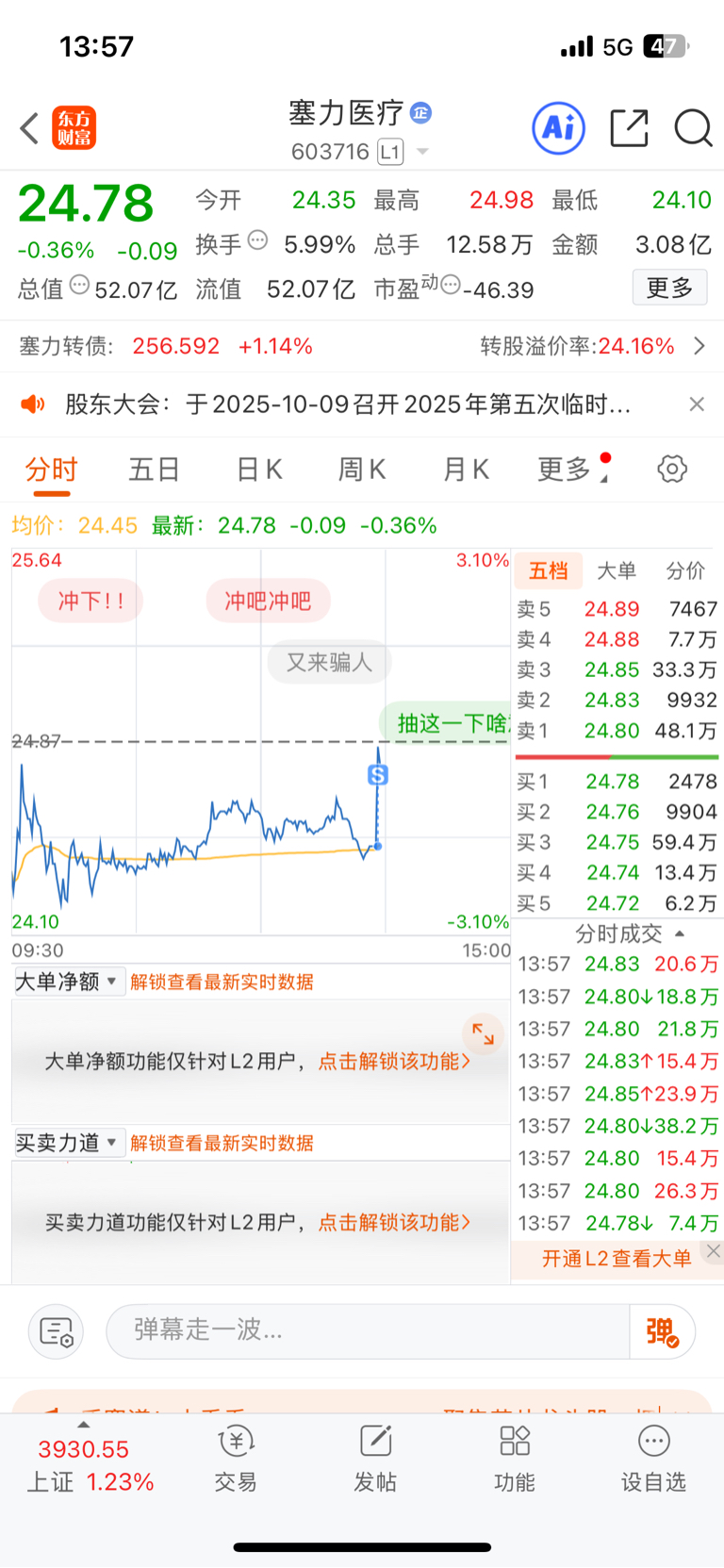 $塞力医疗(SH603716)$ 我拿了那么久,一卖不到5秒就拉升