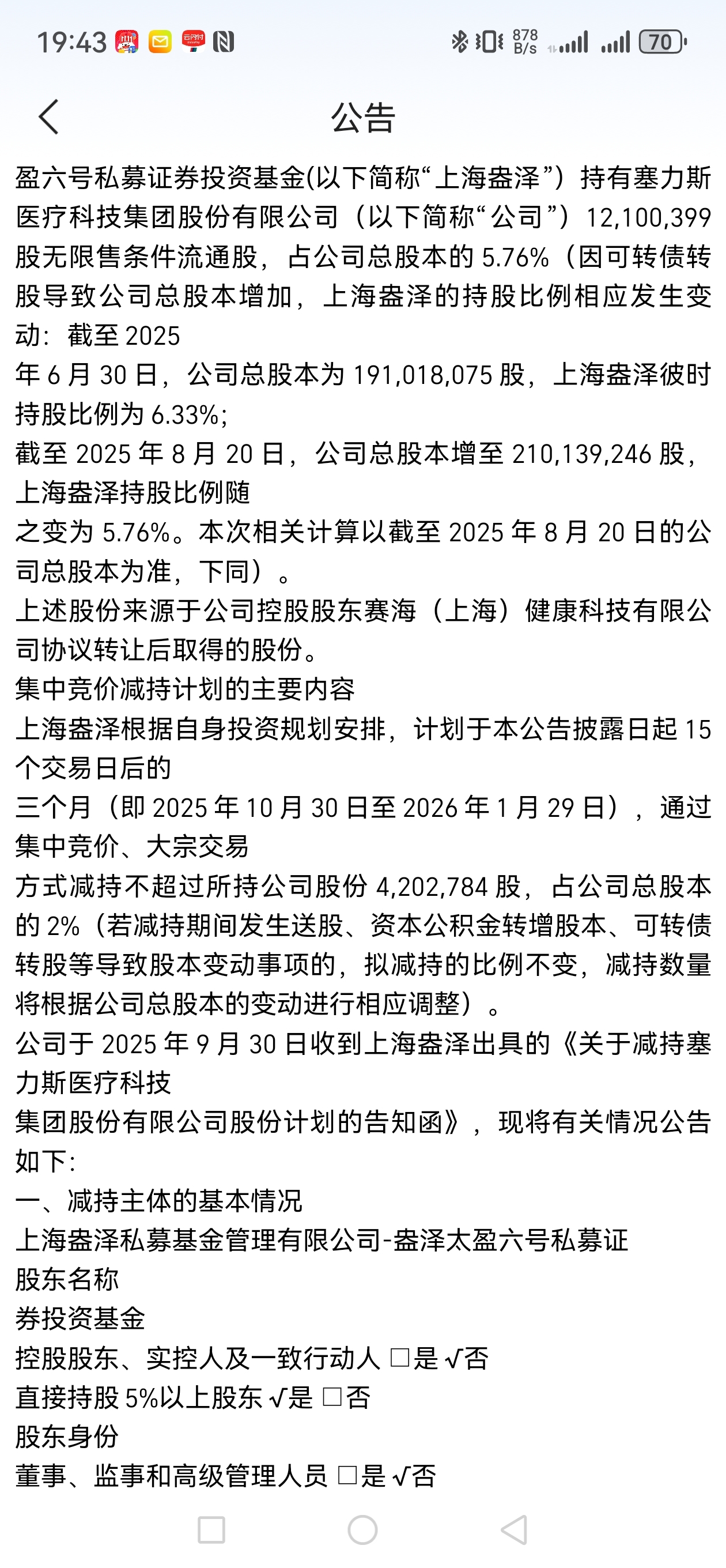 $塞力医疗(SH603716)$ 它减持,这不又要完蛋吗?减持2%,太多了吧???