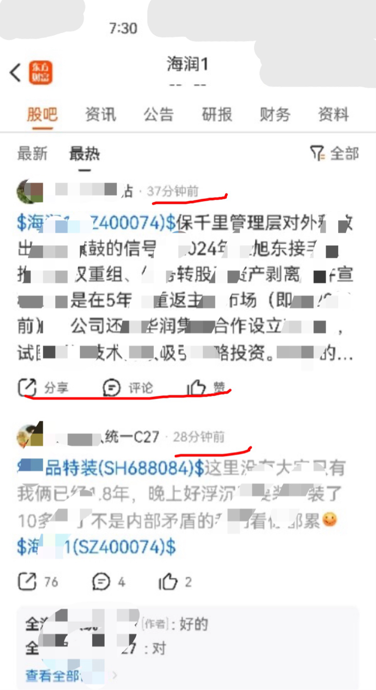 $塞力医疗(SH603716)$ 吧长瞧下无股人换衣服有开始在海润1最热作比,第1次今天下午7:30上来的截图无股人换衣服第1次在海润1最热作比上跳伤心的信手拈在最热作比39分钟,不是内部矛盾10多年就是到处作比有耐力的破坏所有好人和全体海润人一起按住它,麻烦吧长维护下程序时间轴错乱现象谢谢$海润1(SZ400074)$