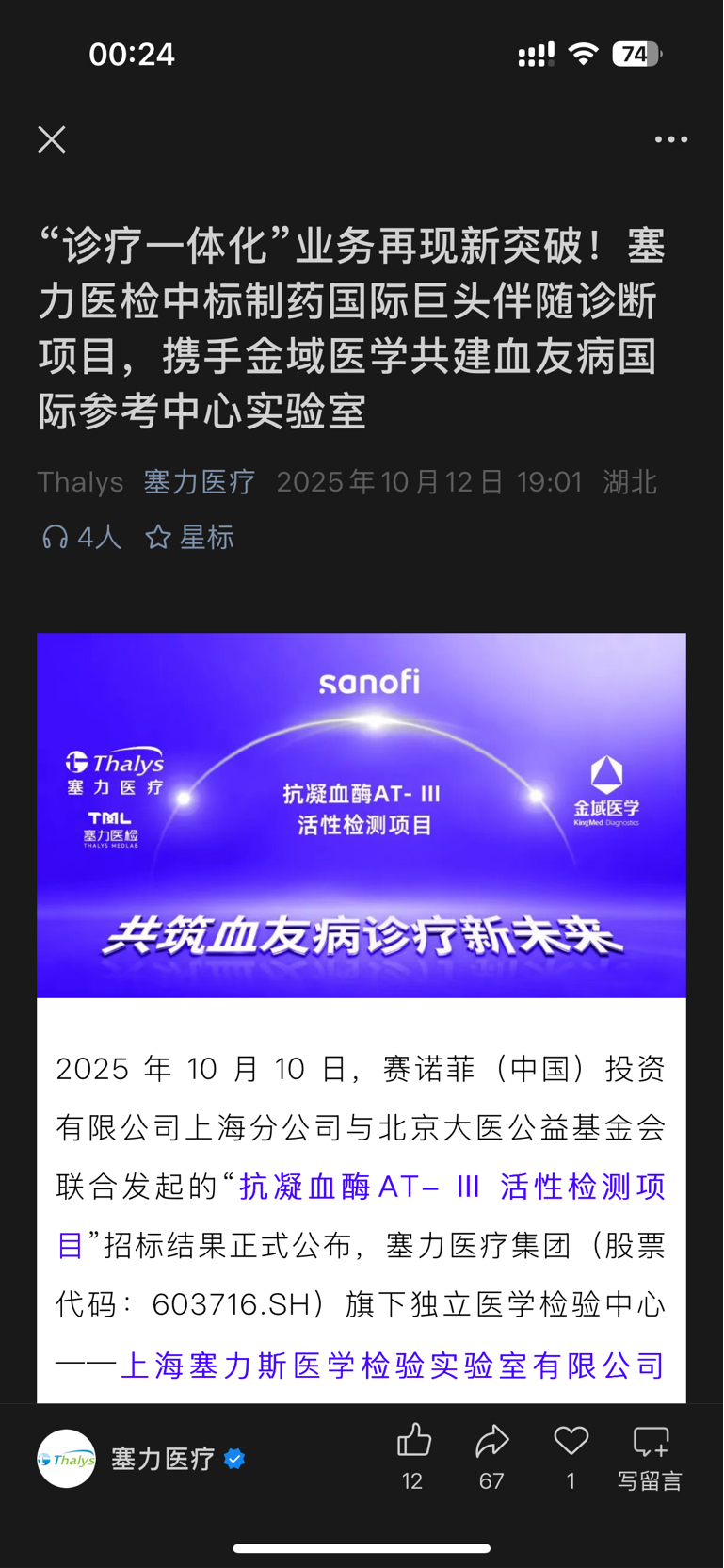$塞力医疗(SH603716)$ 利好,坐稳扶好