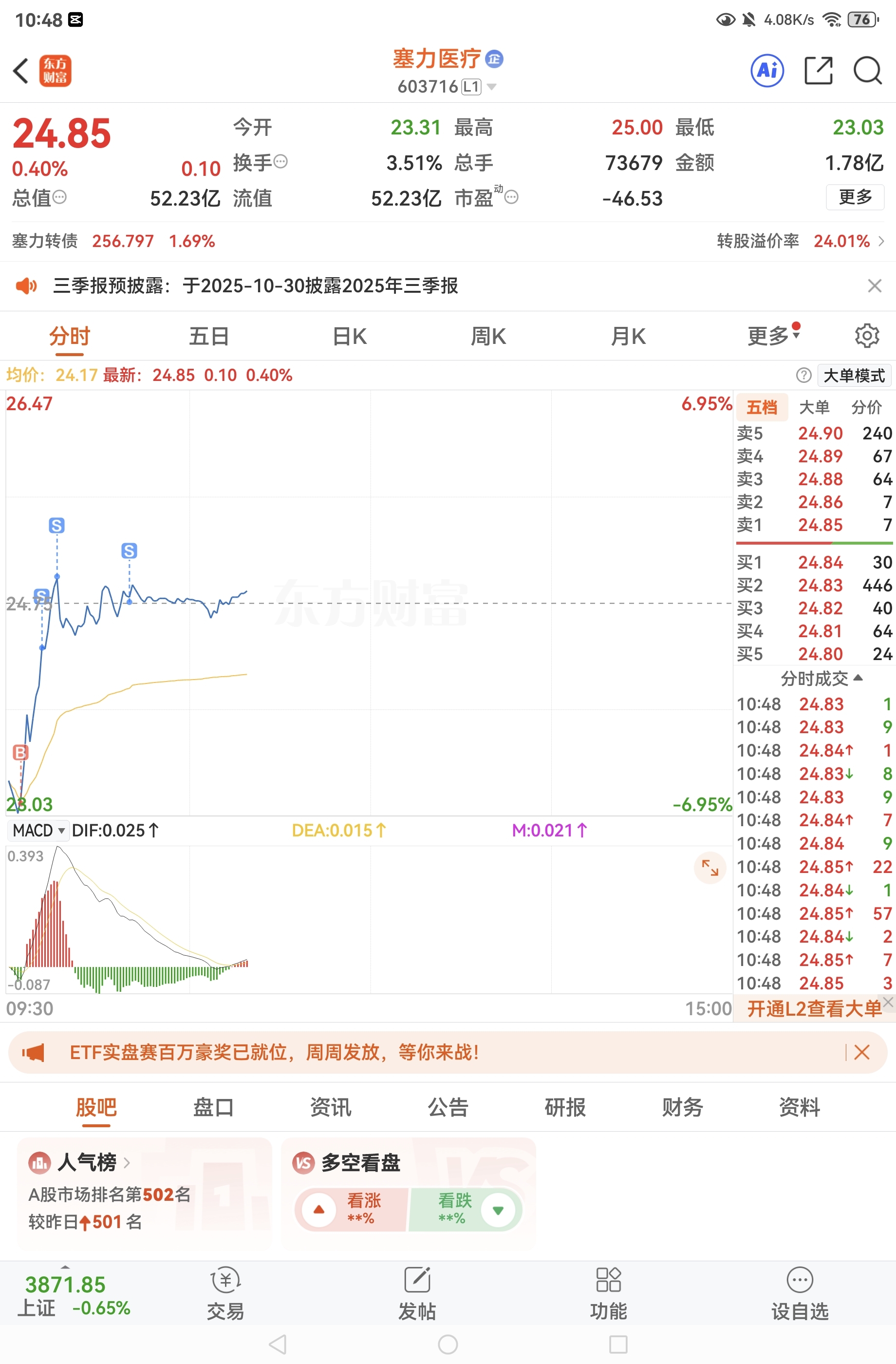 $塞力医疗(SH603716)$ 不贪,T一把,给机会就要跑