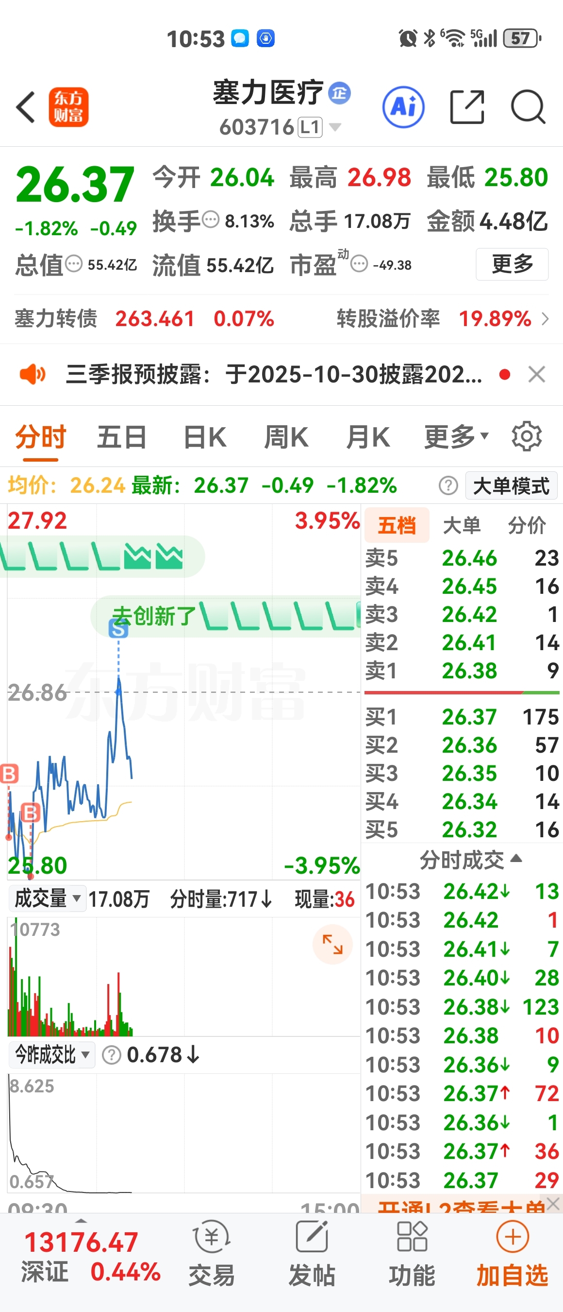 $塞力医疗(SH603716)$ #炒股日记# 完美操作