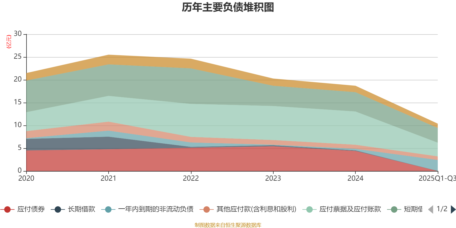 负债重大变化方面,截至2025年三季度末,公司应付债券较上年末减少100%,占公司总资产比重下降15.54个百分点;应付票据及应付账款较上年末减少58.94%,占公司总资产比重下降11.47个百分点;一年内到期的非流动负债较上年末增加611.59%,占公司总资产比重上升10.3个百分点;其他应付款(含利息和股利)较上年末减少10.3%,占公司总资产比重上升0.67个百分点。