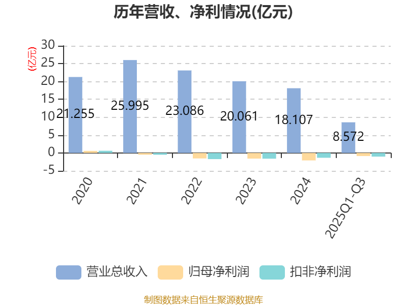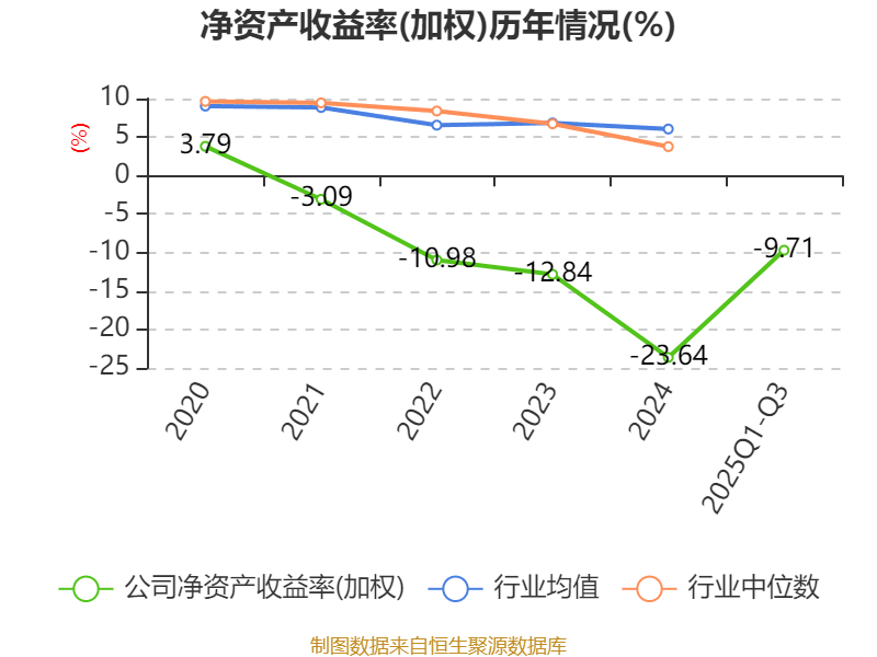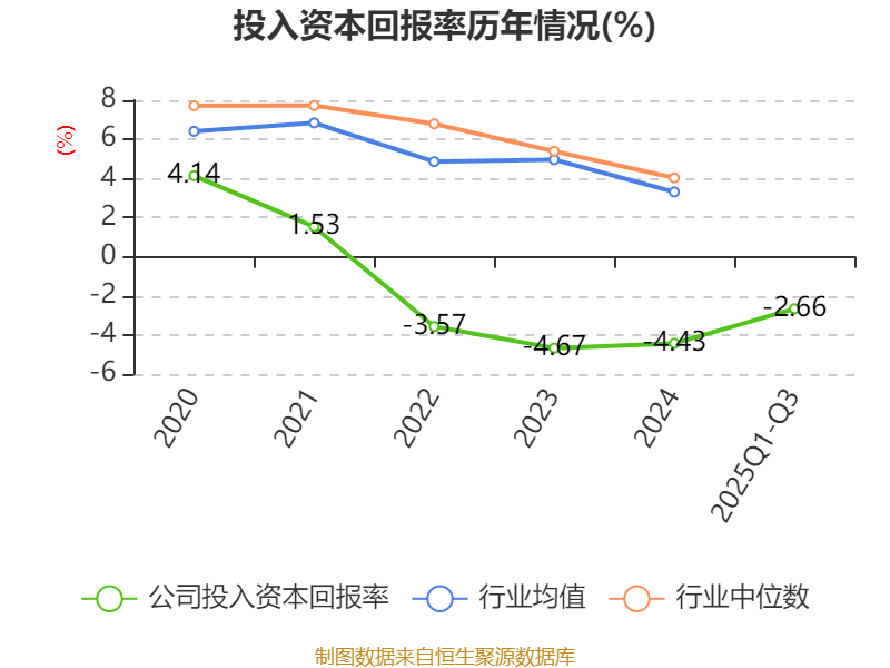 盈利能力方面, 2025年前三季度公司加权平均净资产收益率为-9.71%,同比下降4.56个百分点。公司2025年前三季度投入资本回报率为-2.66%,较上年同期下降2.42个百分点。