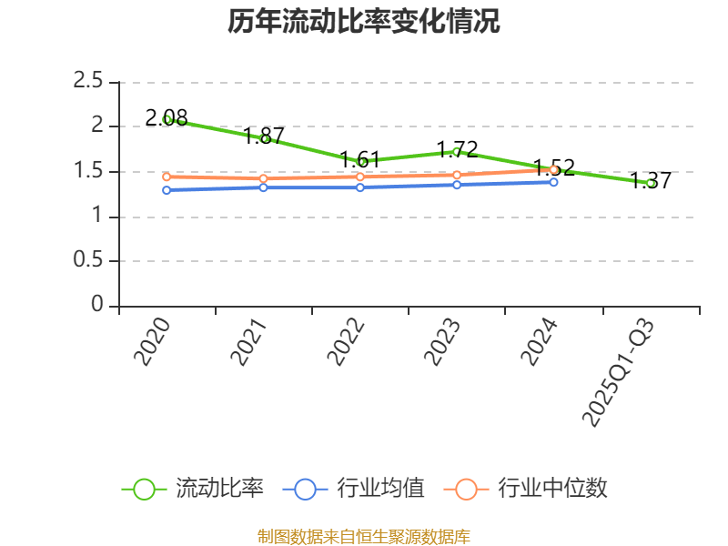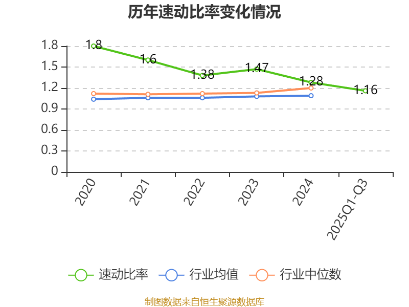 2025年前三季度,公司流动比率为1.37,速动比率为1.16。