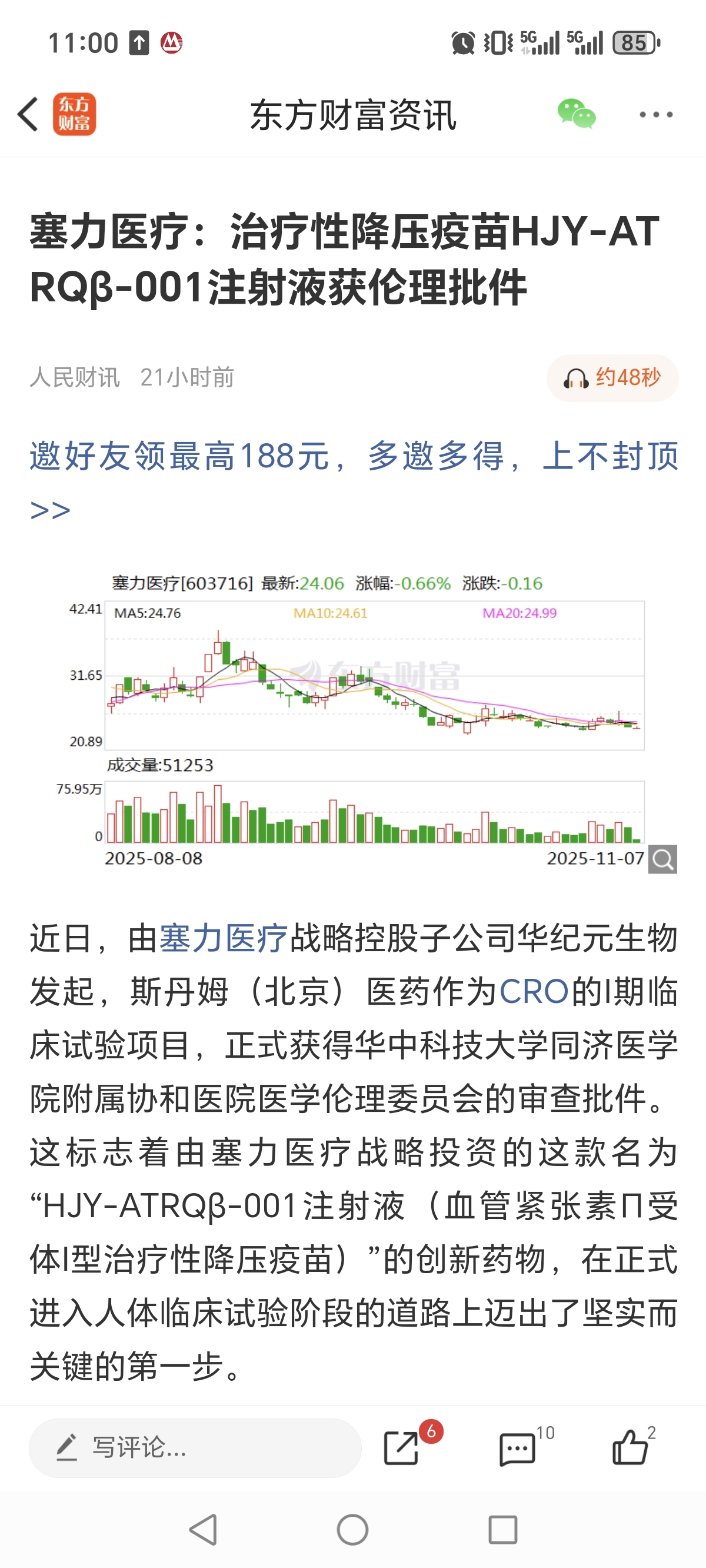 $塞力医疗(SH603716)$ 疫苗获批,重大利好