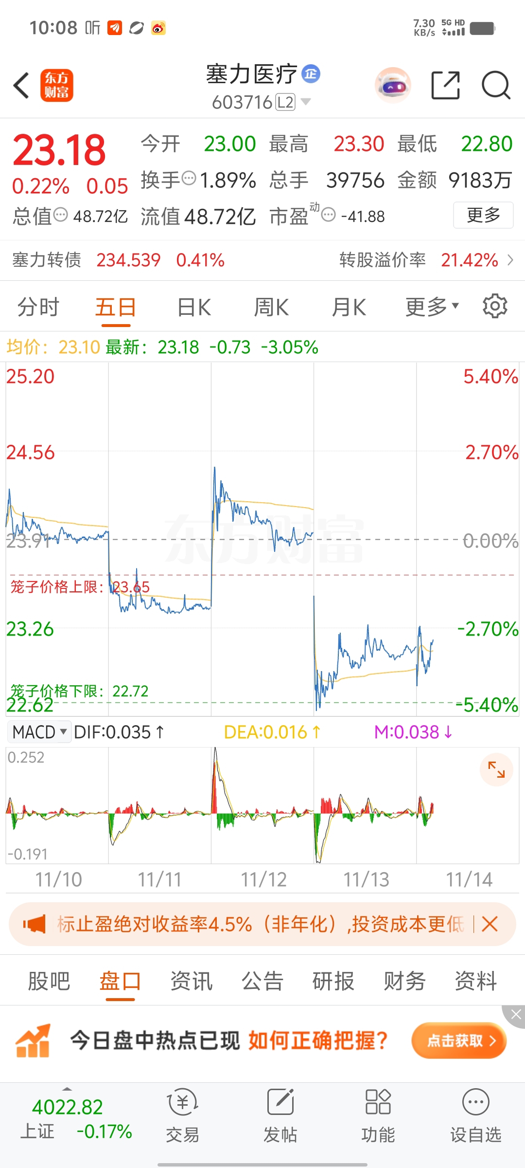 $塞力医疗(SH603716)$ 11.12日卖,11.13低位买回做T,既然能看出主力高点抛低点吸,现在低点为何不跟主力一起进入?22开头,23.2以下都是完美入场时机