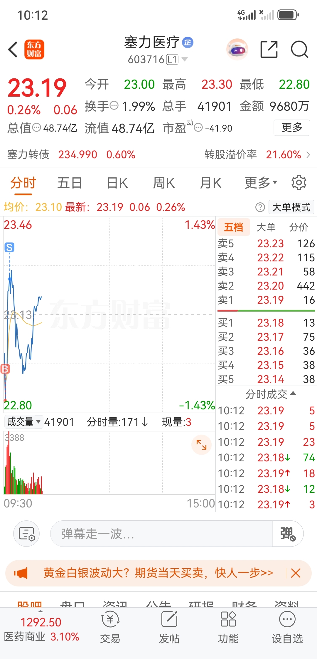 $塞力医疗(SH603716)$ 上午T已经做完,涨跌随意