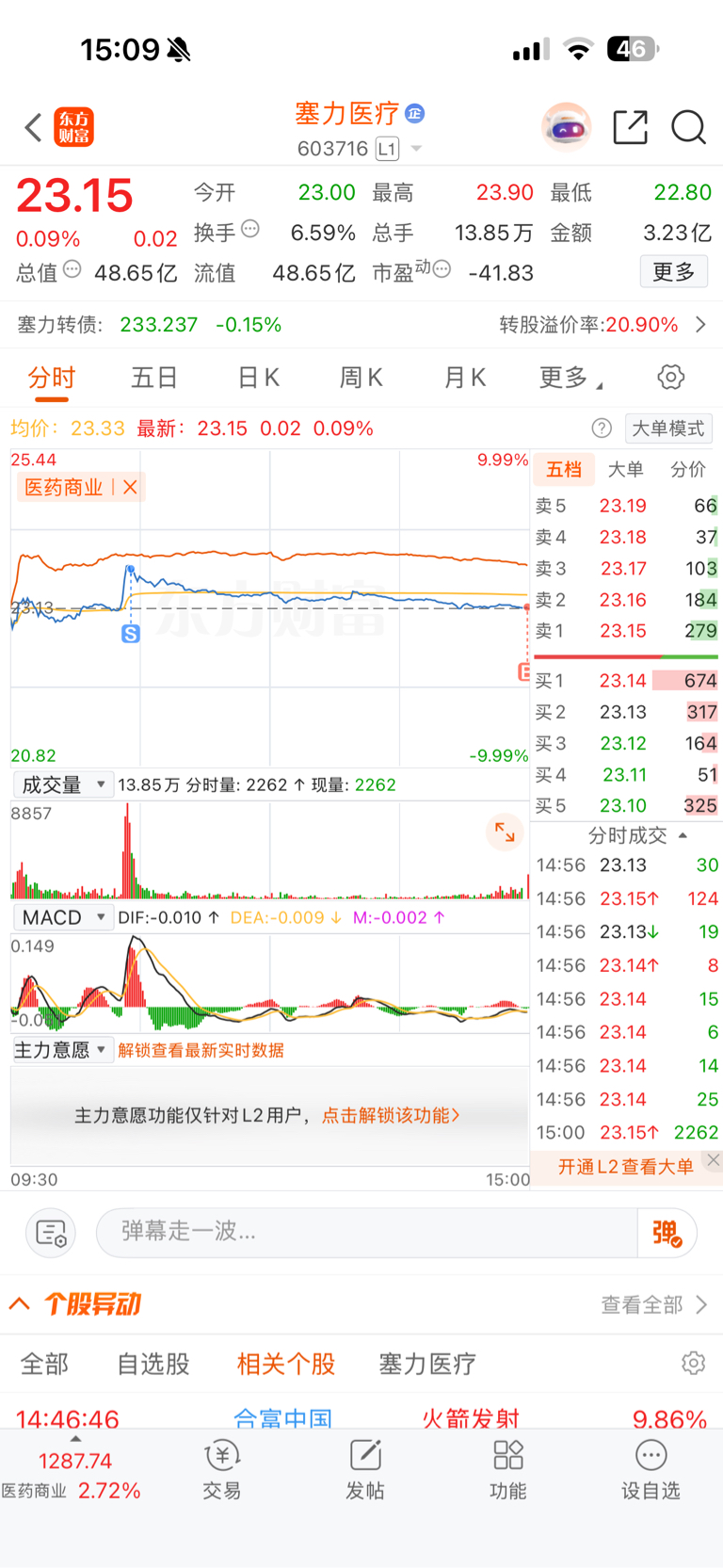 $塞力医疗(SH603716)$ 破天荒的今天竟然没绿。
