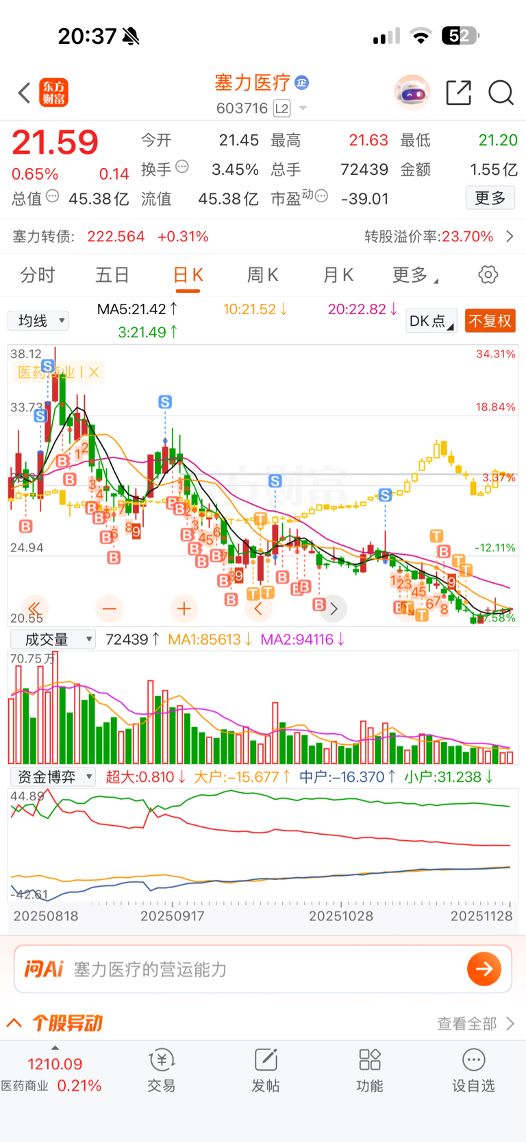 $塞力医疗(SH603716)$ 持续关注,等找到底部我再回来好好做个短线。