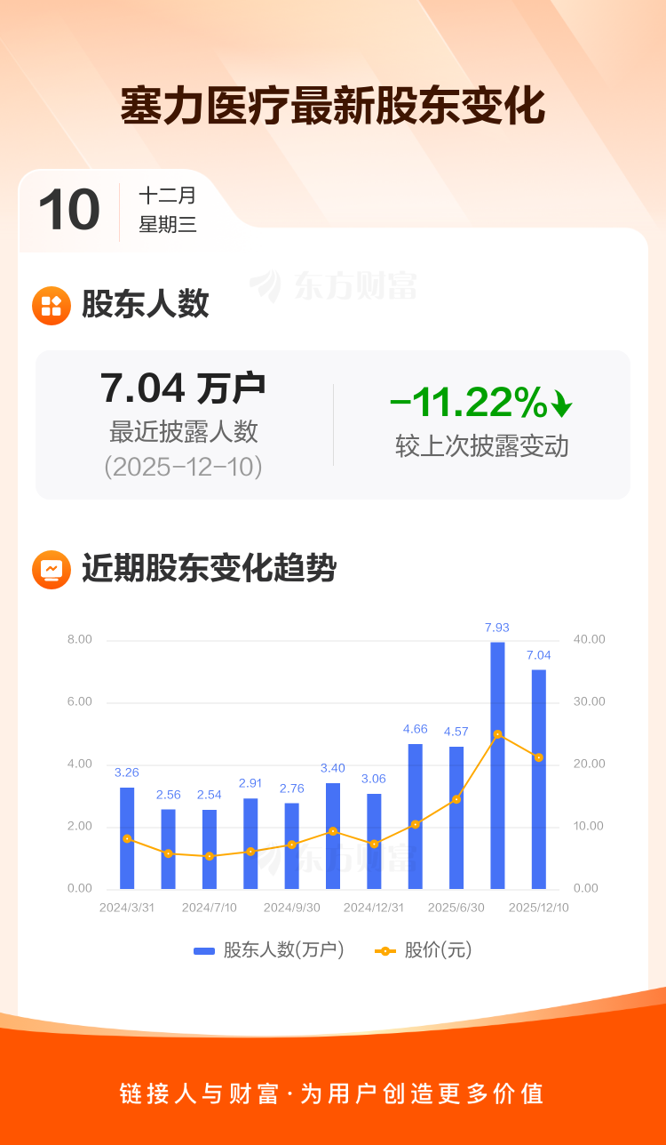 塞力医疗:截至12月10日最新股东户数7.04万户,较上期减少11.22%