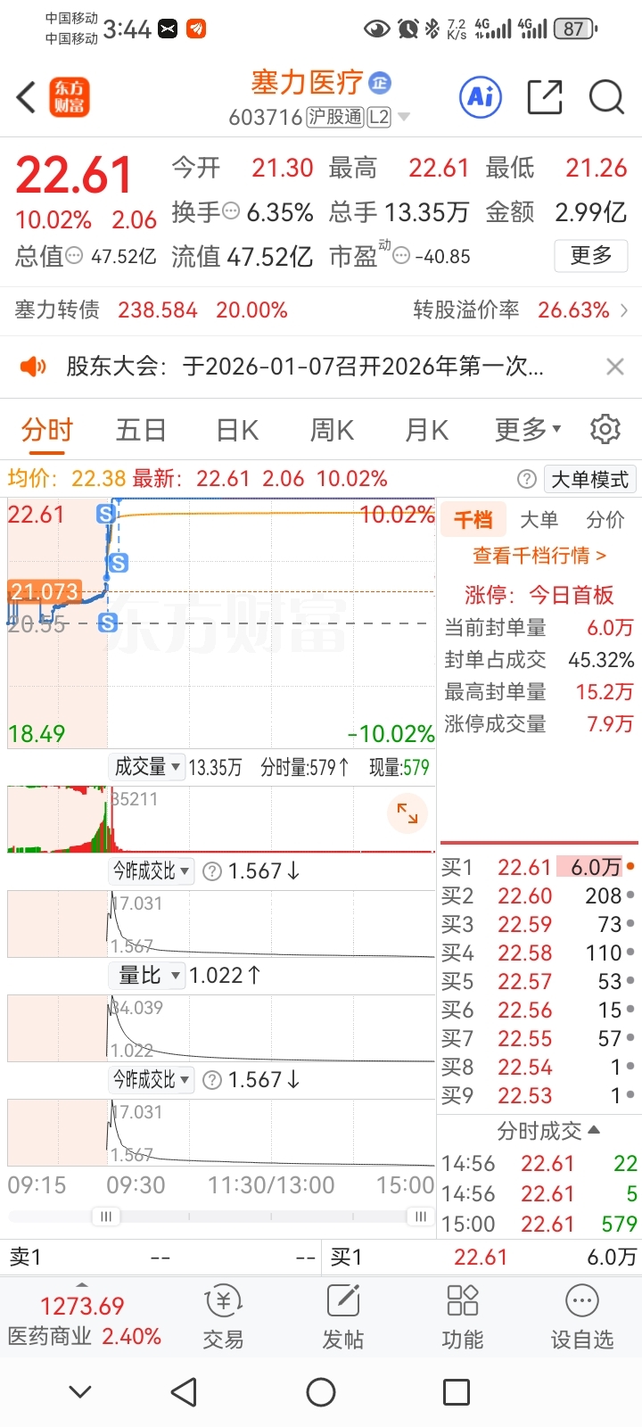 $塞力医疗(SH603716)$ T错了