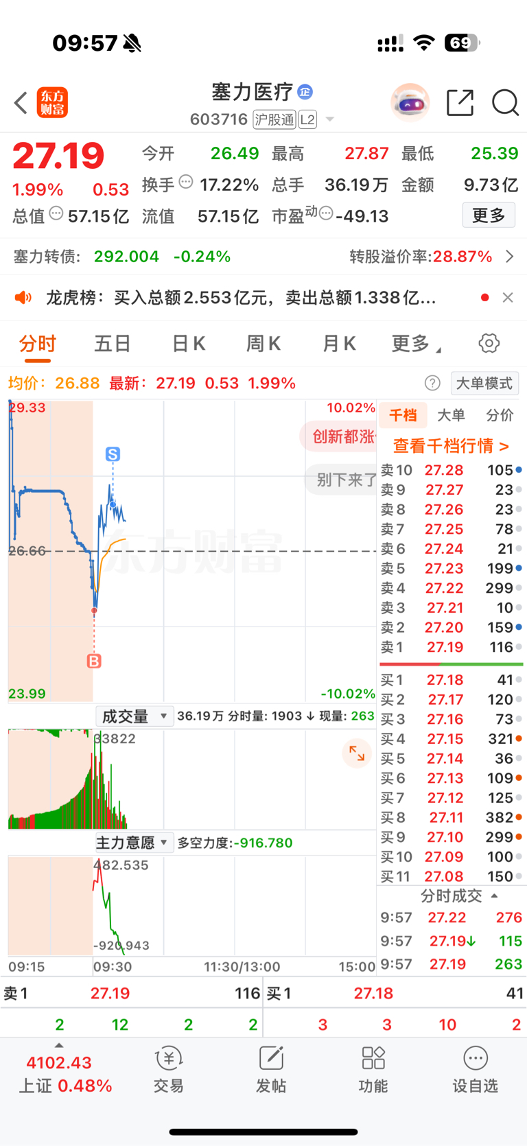 $塞力医疗(SH603716)$ 今天任务完成,尾盘看情况要不要加